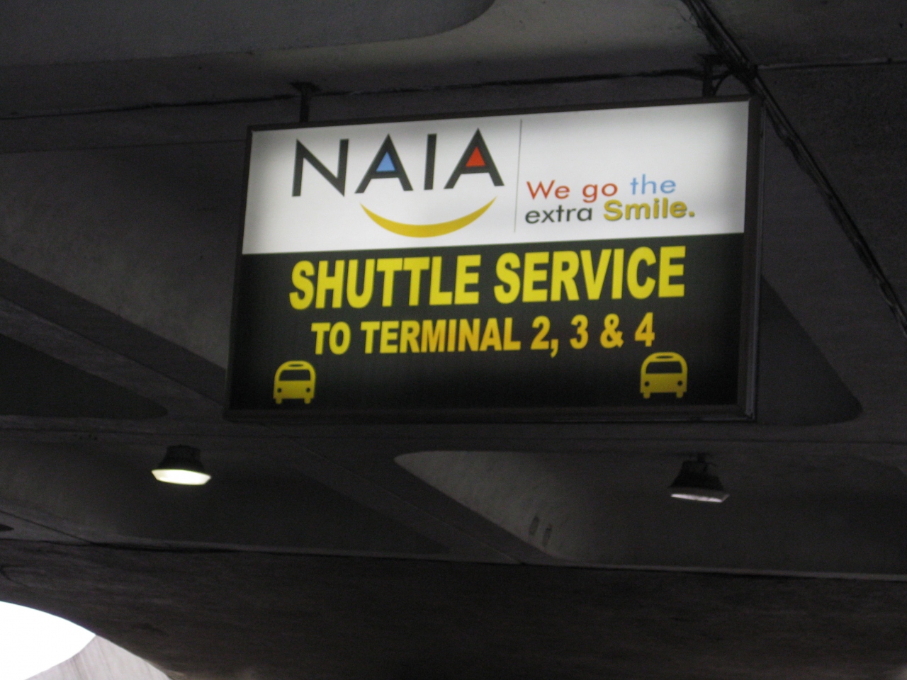 マニラニノイ・アキノ国際空港のターミナル連絡シャトルバス、利用してみました。ターミナル1に到着してターミナル3への移動に利用しました。ターミナルビルを出ると右にバス停はあります。(左へ出るとタクシー乗り場)看板があるので場所はわかりやすい。バスはすぐ来ました。どれぐらいの間隔で運転しているかは不明。料金は20ペソ、乗ってから払います。順路はターミナル1→2→4→3の順です。