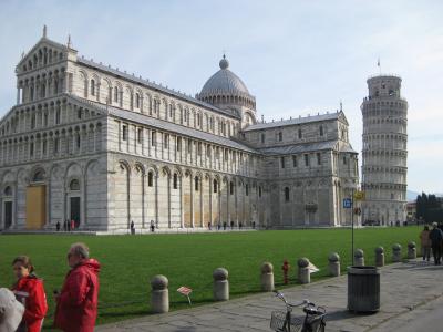 倒れないようにワイヤーで引っ張ってあります。保護のため気を配っているのがわかります。内部の階段を登り、屋上に出ることも可能です。お土産物屋が付近にたくさんあり、スリっぽい人もたむろしていて要注意です。(日本人の観光客がひったくりにあっていました)。。。地盤の悪いところに建てたんですね。この塔の他にも斜めっている建物がありました。