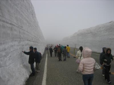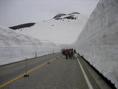 有名な立山黒部アルペンルートに行って来ました。長野県側からバス、トロリーバス、ケーブルカー、ロープウェー、トロリーバスを乗り継いで室堂へ到着しました。少し歩けば雪の壁が両側に切り立ったところまで行く事ができます。涼しいけど人がいっぱいでした。