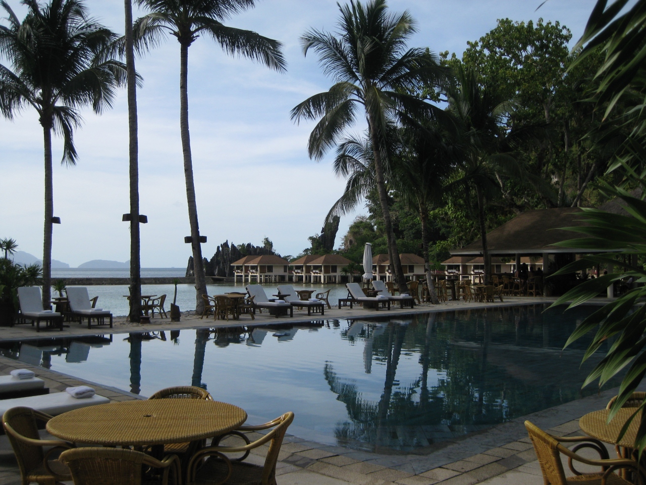 マニラ空港から小型の飛行機でエルニド空港へ、そこから専用船で約1時間、待望のラゲンに到着します。海上コテージが湾を取り巻くように建っています。そのひとつにチェックイン、そのあとは何をするかは自由、ホテル側でいろいろなプログラムを用意しているので退屈する暇はありません。アイランドホッピング、シュノーケリング、ダイビング、、、、敷地内にはプールもあります。