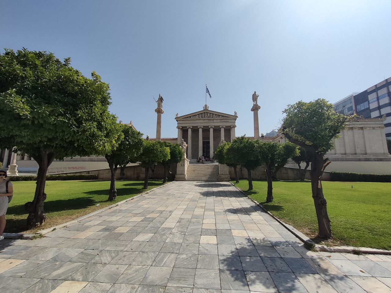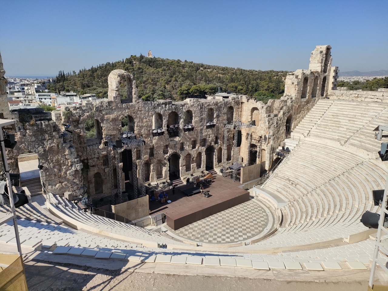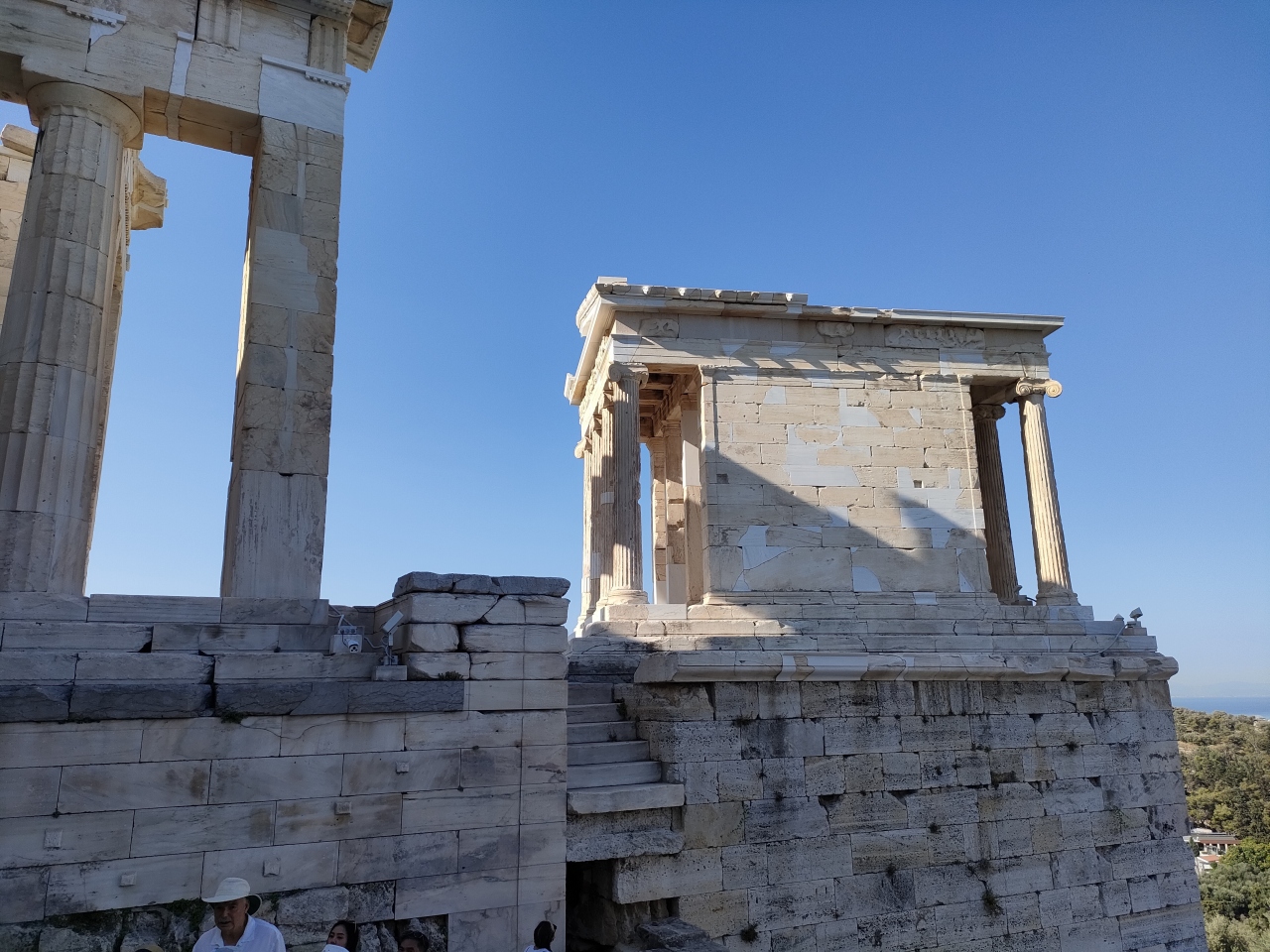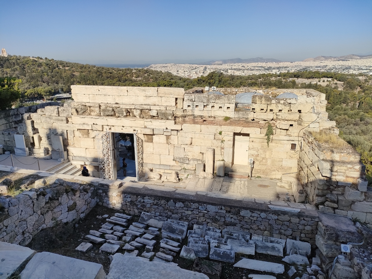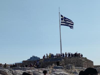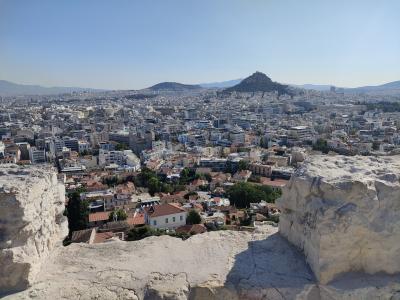 アクロポリスの丘を登ってきて、パルテノン神殿やエレクティオン神殿を見学したあと、一番北の端まで歩いてくるとこの展望台があります。アテネ市街を展望できるのはもちろんのこと、パルテノン神殿を背景にして自撮り写真を撮るにもいいスポットだと思います。
