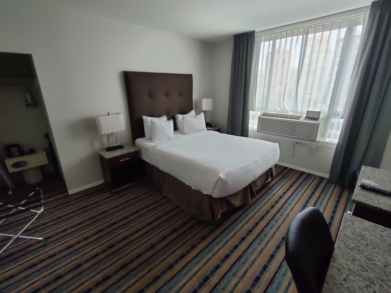 バンクーバー市内のホテルはどこも結構いい値段ですが、そのなかでもこのホテルはコスパ良好だと思います。スカイトレインの最寄り駅から徒歩10分程度、空港からのアクセスも便利です。このホテルは以前、ラマダ系列だったようですが、今はクオリティ系列となっています。部屋もきれいで防音も良好でした。コンシェルジェの女性がとても親切でいろいろ相談にのってくれました。またホテルのまわりにはコンビニや飲食店も数多くあり困ることはありませんでした。