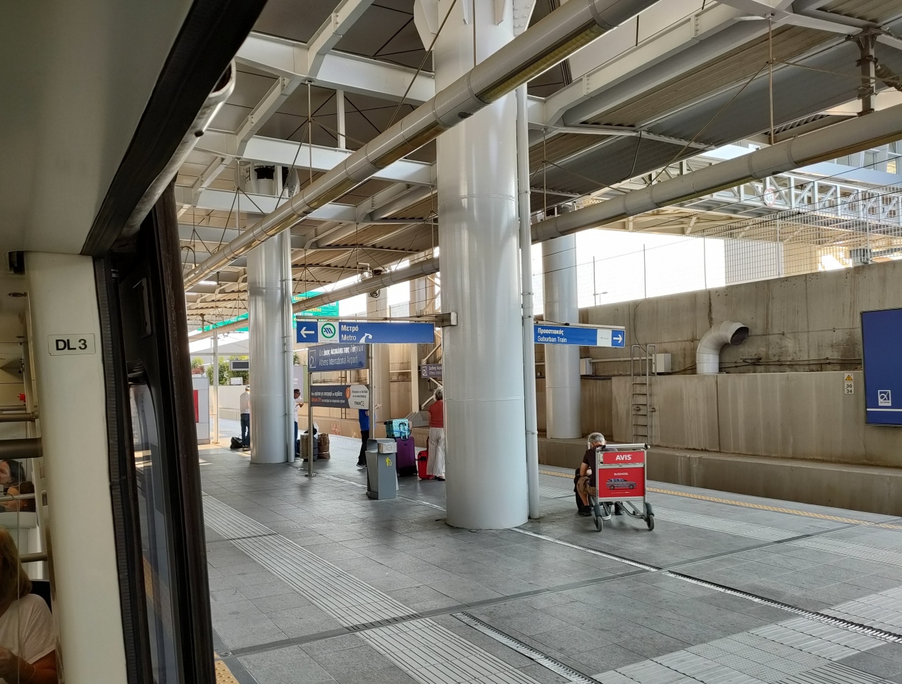 ドーハからカタール航空でアテネ空港に到着しました。市内への移動手段の一つが地下鉄です。空港を出て歩いて地下鉄乗り場まで行くことができます。チケットは窓口で購入できました。18時頃に利用しましたが、乗客は意外と少なく、あまり混んでいなくて座れました。