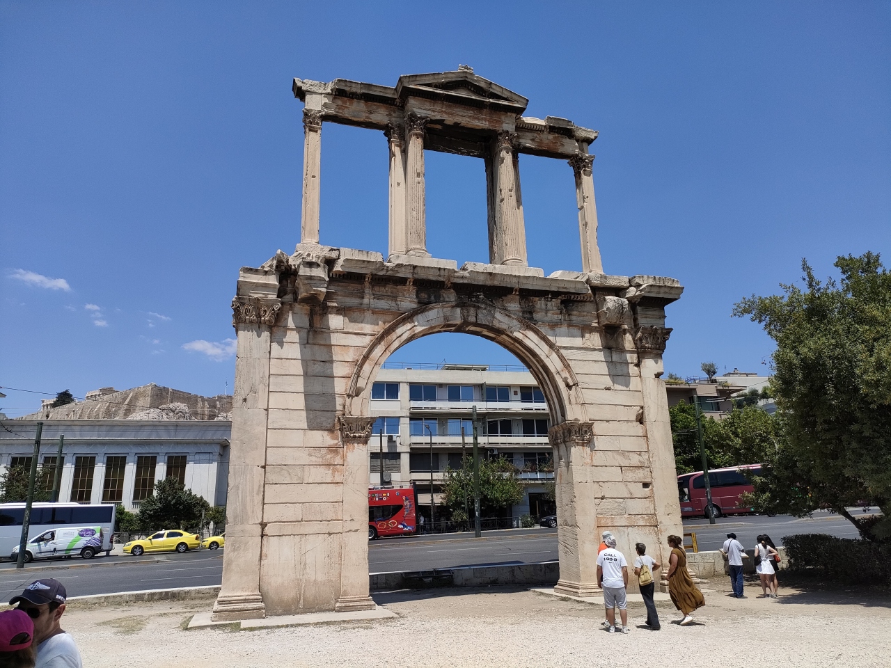 新アクロポリス博物館を出て、ゼウス神殿を目指して歩いていると、メインの道路わきに突然あらわれます。もともとはもっと大きな凱旋門だったと思いますが、現存するのはアーチ状のゲートとその上に建つ柱列らしきものだけです。ガイドブックに記載があったので気が付きましたが、何も知らないと通り過ぎていたかも知れません。