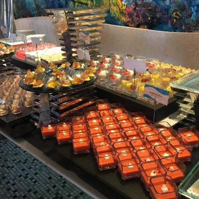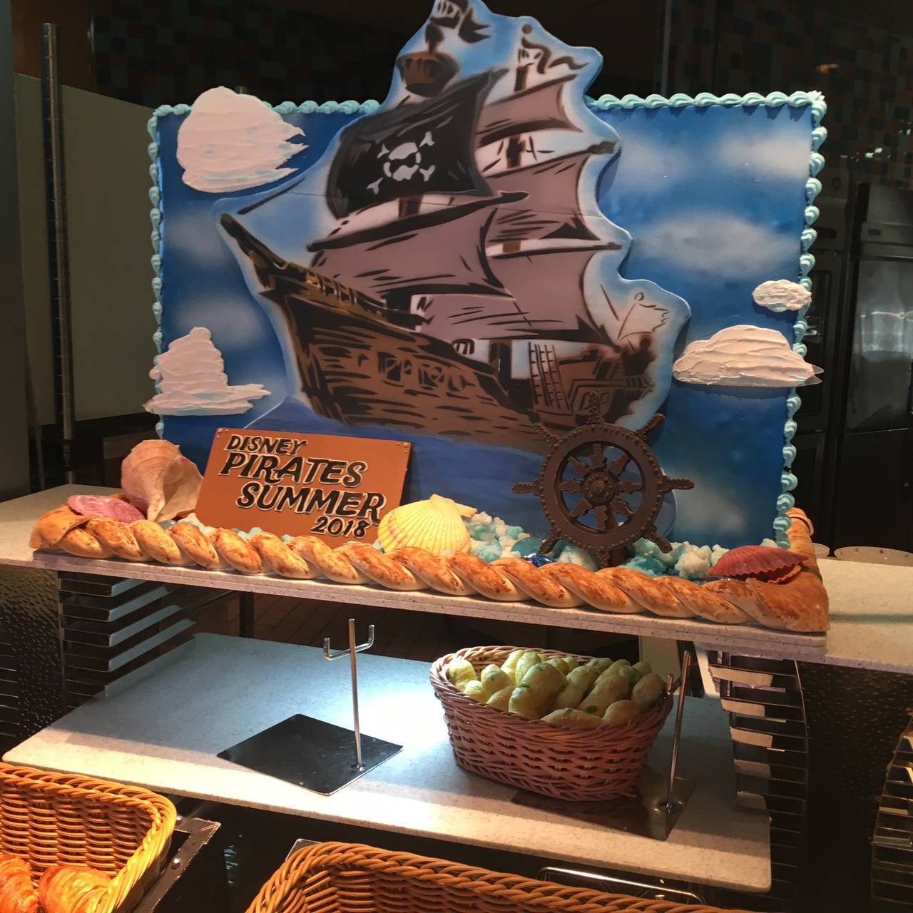 ディズニーシー、ホテルミラコスタの中にあるビュッフェのレストランです。11:30からのランチを予約をして利用しましたが11:50のパイレーツのショーをテラスから観ることができました。メニューもパイレーツになってるものがあり可愛かったです。