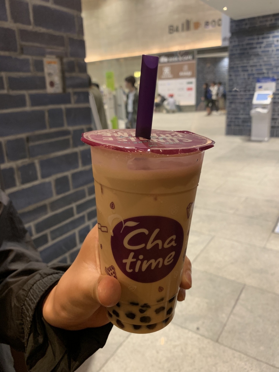 横浜相鉄口の地下、ジョイナスの食品街にあるタピオカミルクティのお店です。どこかなとおもって行ってみたけど行列だったのですぐに見つかりました。店外に出て三重くらいの列になってました。メニューを配られて見ながら待ってました。日曜の3時頃でたぶん混んでる時間帯だと思いますが30分くらい待ちました。