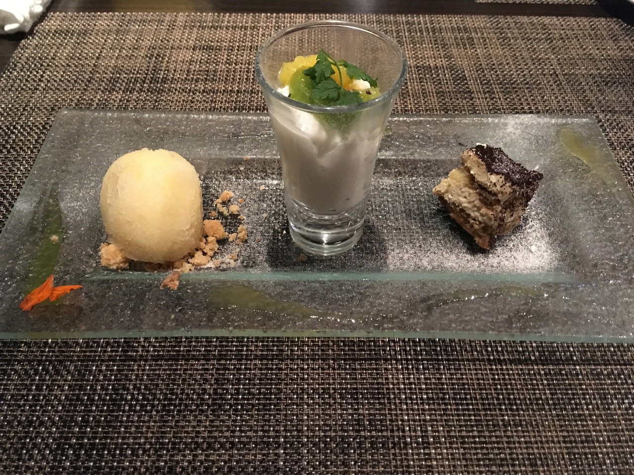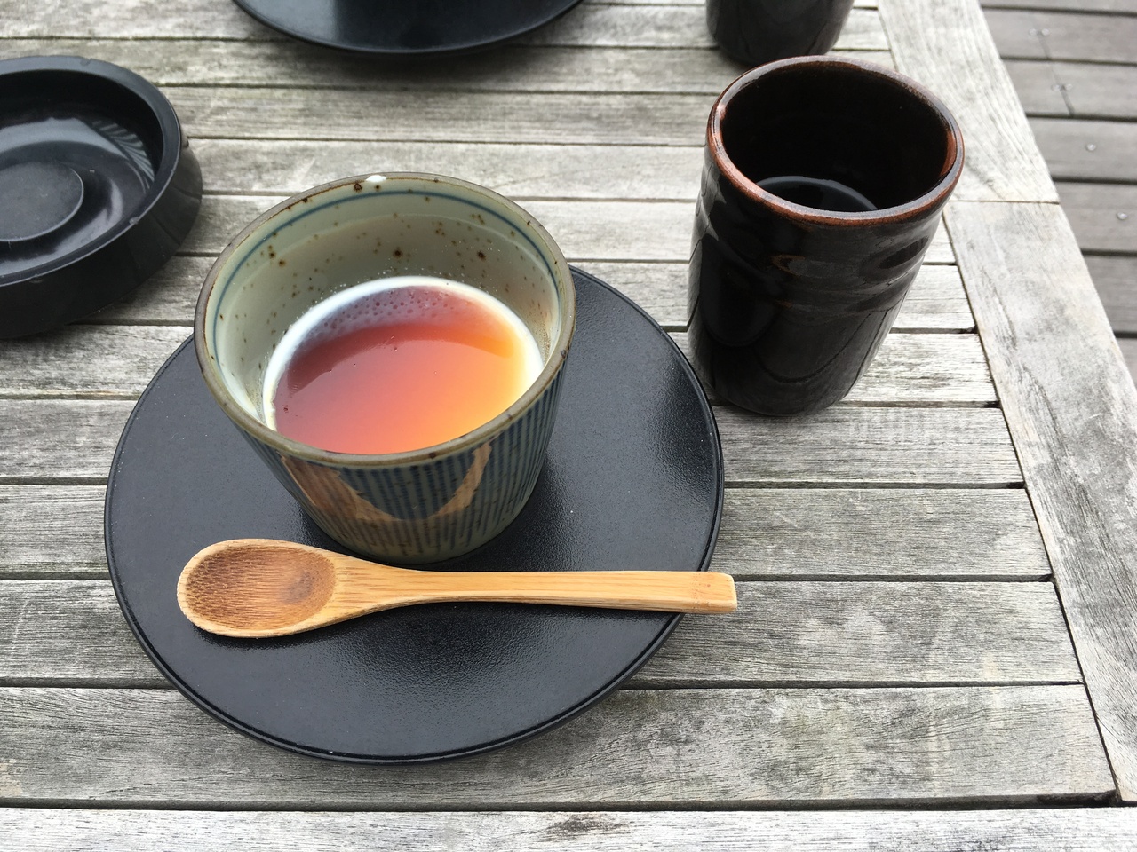 稲村ヶ崎の駅の近く、江ノ電の線路を渡って入り口から入り階段を上っていったところにお店がありました。ドラマのロケでも使われたお店で人はいっぱいでした。海やテラスに出ると江ノ電も見えるのでロケーションが良いです。席は2時間までですがテラスではのんびりしてくださいと言われてテラスに出てデザートとお茶をいただきました。