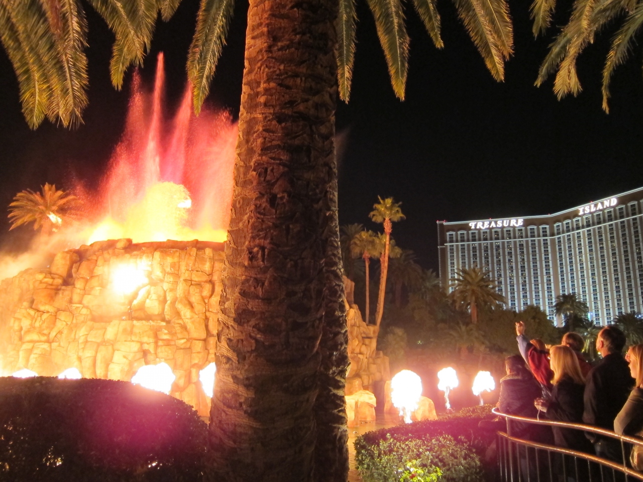 ラスベガスを変えたといわれる、スティーブン・ウィン氏が手掛けたテーマ性を持たせたホテルの先駆け的な存在で、亜熱帯をイメージしたホテルとなっており、ホテルの前では毎晩、火山噴火のショーが行われています。