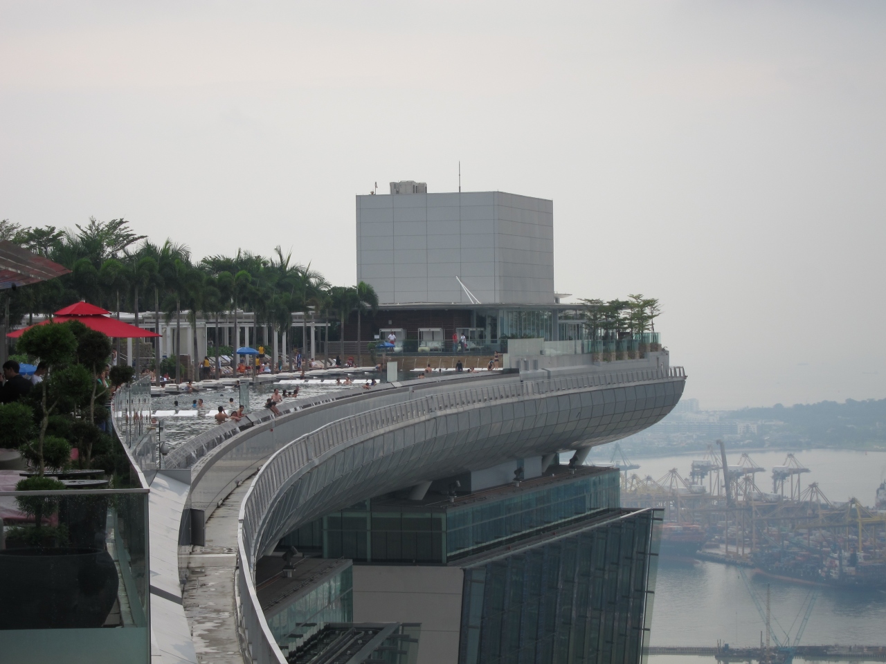 某携帯電話会社のCMで有名になった、マリーナ・ベイ・サンズホテルの屋上にプール付きの空中庭園です。