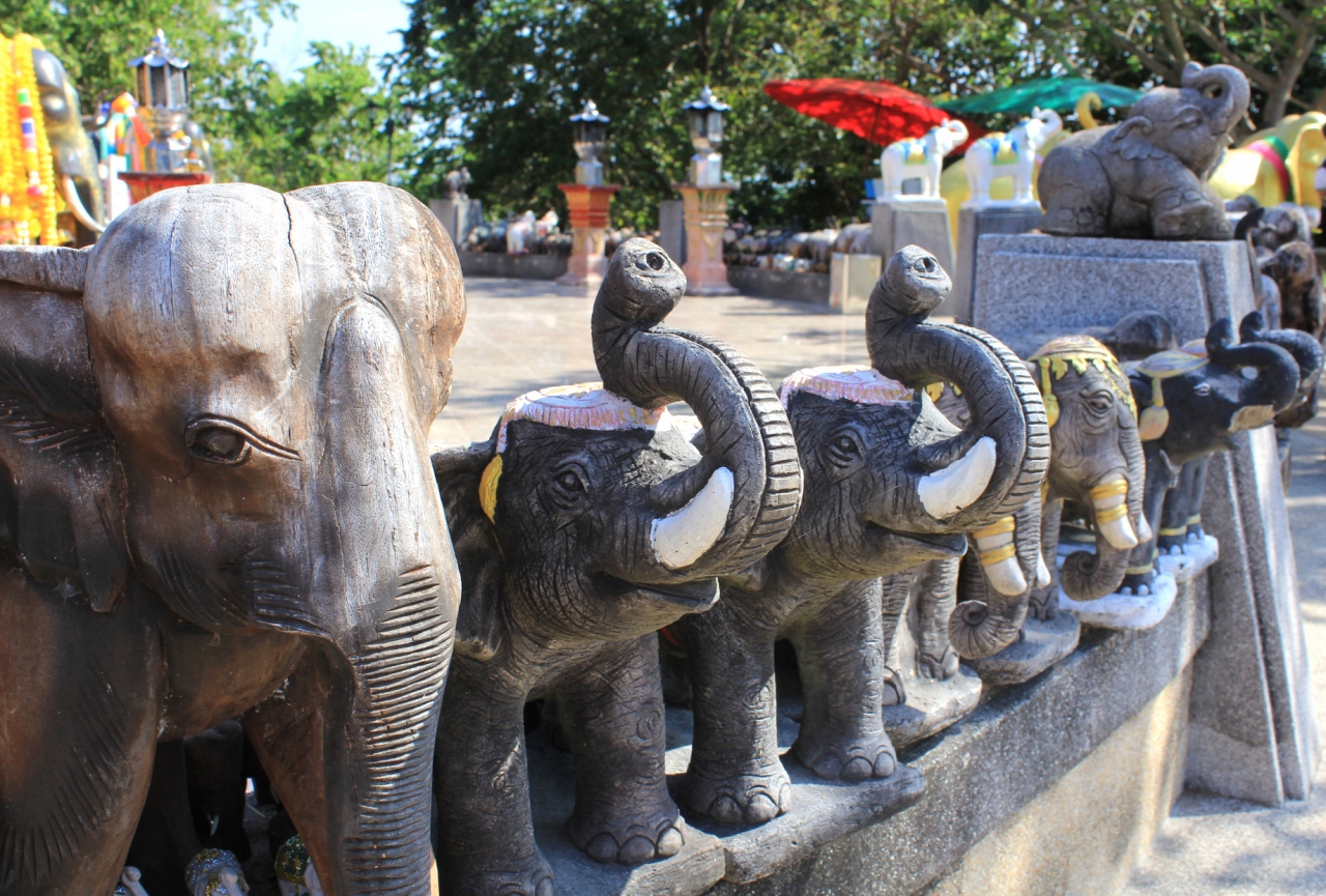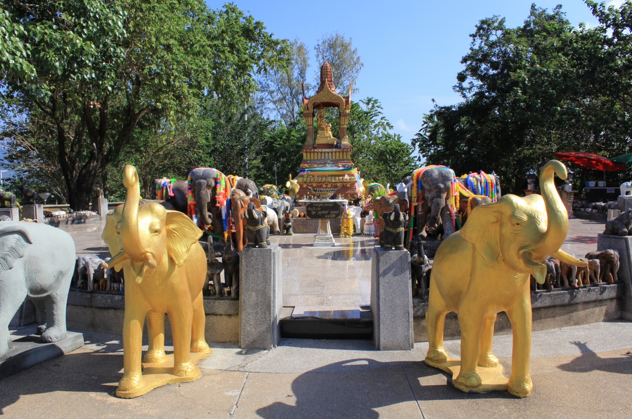 岬の小高い場所にあったお堂があり、何体もの象の置物が取り囲んでいます。
