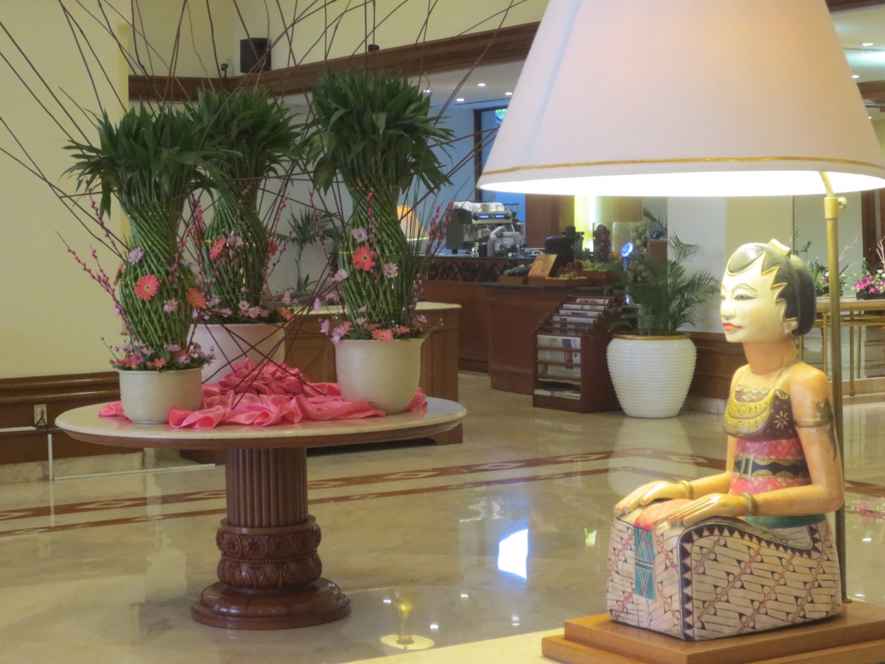 希望していたホテルの予約が取れず、急遽立地だけで選んだホテル。場所は大通りに面していて分かりやすい。設備は古いけど、きれいに掃除してあって問題無い。特筆すべきはオーナーの趣味なのか、まるで美術館に来たような調度品の数々。ジャワ美術をホテルにいながら堪能できてお得でした。