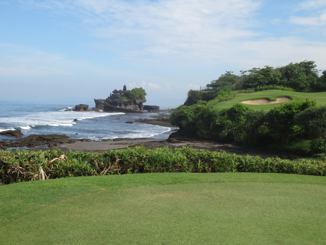 タナロット寺院を臨む海超えの名物コースがある、ニルワナゴルフでプレイするためだけに泊まりました。ホテルの敷地は広くて綺麗だけど、ゴルフをしないんだったらもっと便利な所に泊りたいかも。夜の外食は車を手配しないと食べに出られないし(タクシーはいない)、ある夜ホテルのダイニングを利用しようとしたら貸し切りになっていて、あやうく食いっぱぐれるところでした。(この時ルームサービスを利用しましたが、部屋においてあるメニューが古いとのことで注文出来ないもの有り) 2017年8月からリノベーションのためクローズすると聞いたので、思い切って行っておいて良かったです。