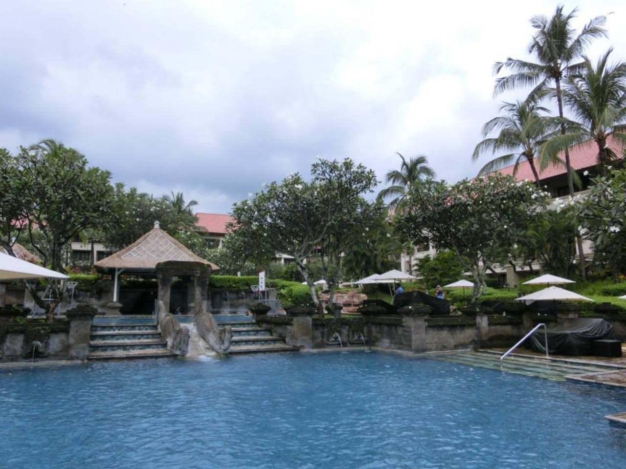 ビーチには降りられるけど、泳ぐことは出来ないようです。部屋数の割にはプールは小さいから、混雑時期にはデッキチェアは競争必須だと思われます。- 旅行時期