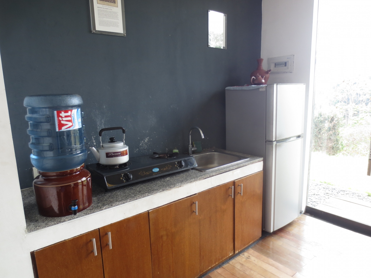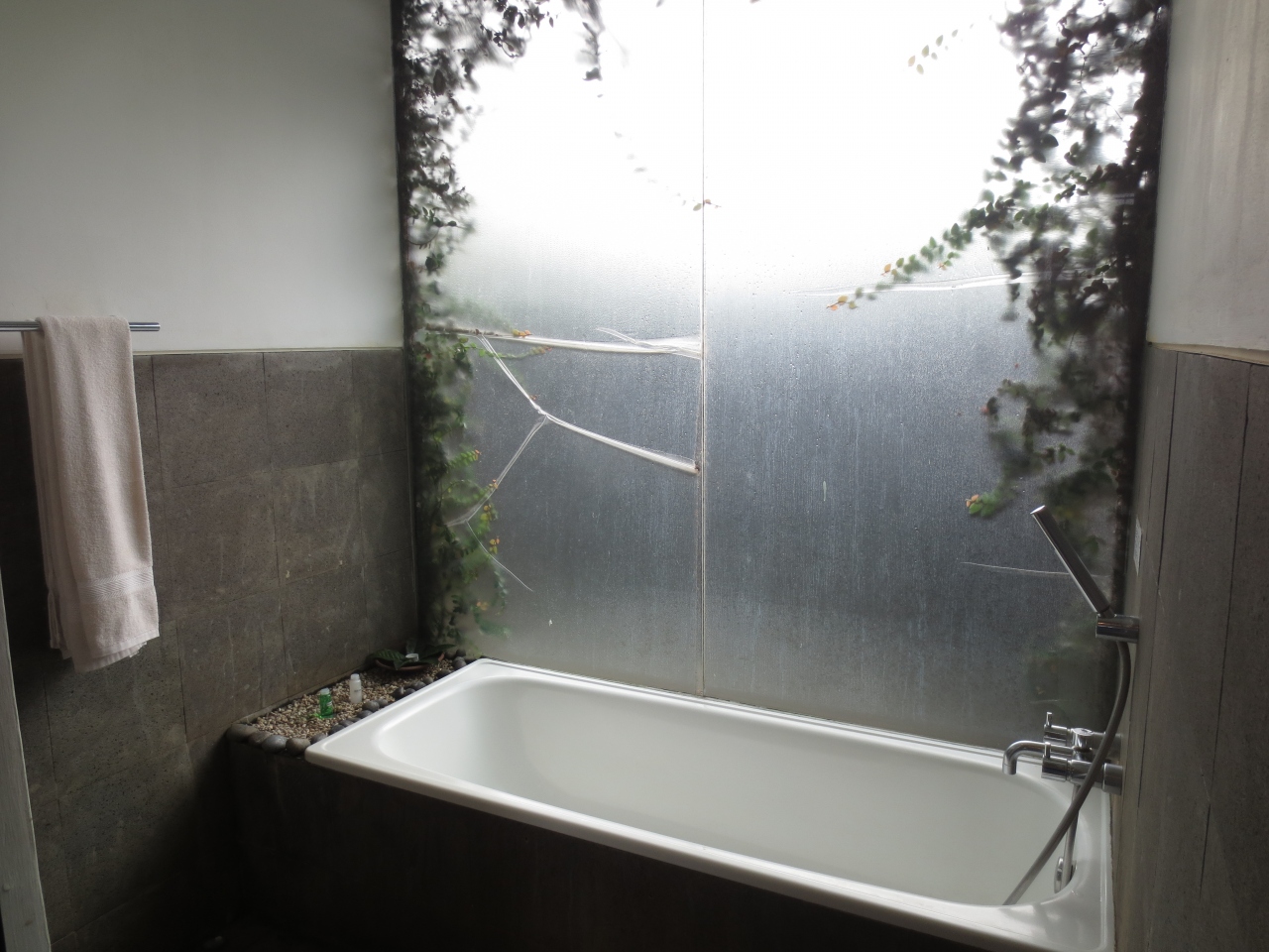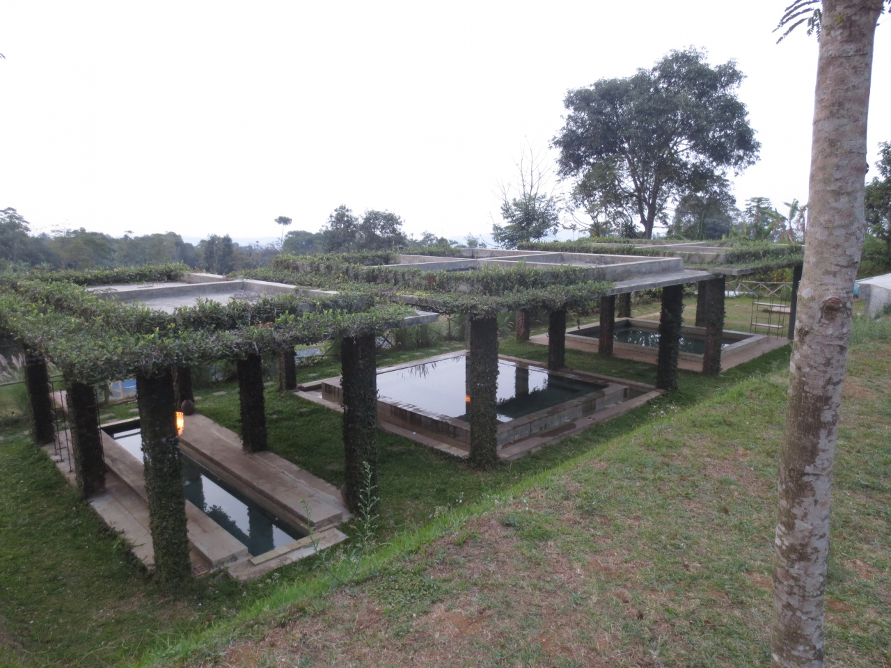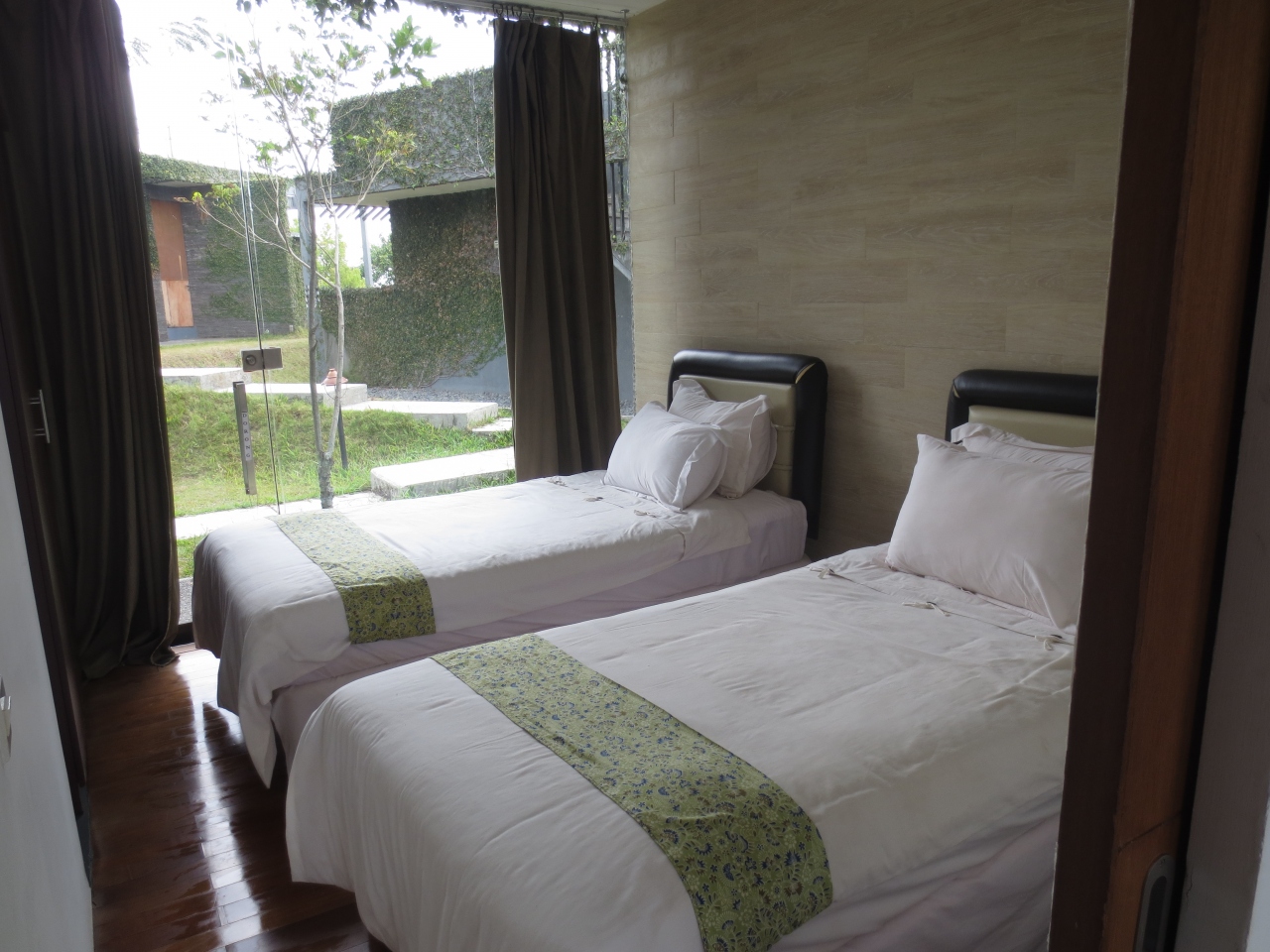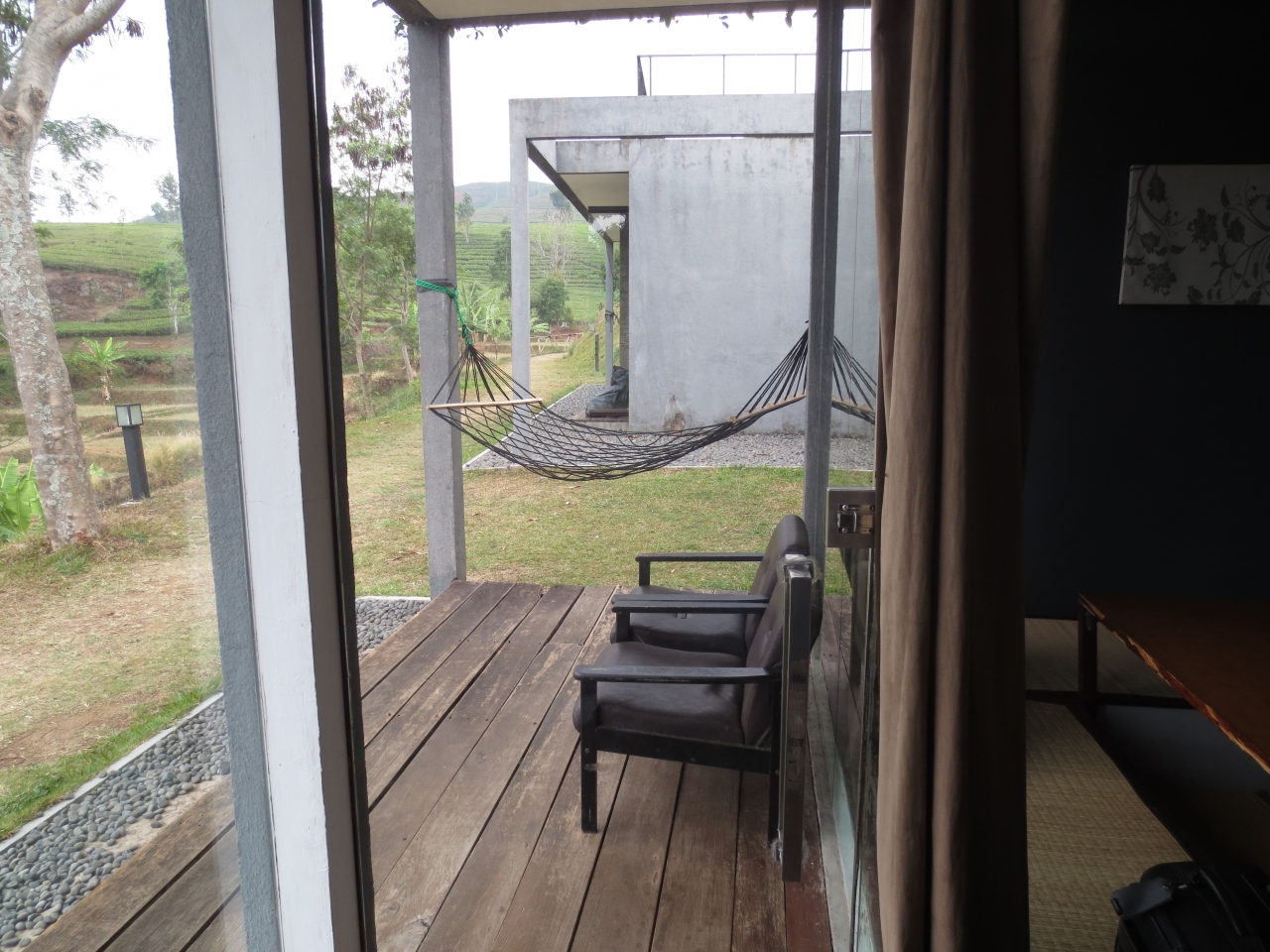 近くにタンクバン・プラフ山という箱根の大涌谷みたいなところがあるので、ホテル内にも温泉施設(足湯)があるとの評判を聞き行ってきましたところ、残念ながら稼働していませんでした。ホテルはバンドン市内からは車で30分くらいの郊外。市内の賑やかさと比べ田舎のたたずまい。周辺に食事をする場所はありません。ホテルのレストランで食事をしましたが、ビールはありましたが本数が少ないので早い者勝ち。お茶畑に囲まれた広い敷地にコテージが点在しのどか。しかし塀など遮るものはなく、警備員が見回ってくれていましたが、お部屋にエアコンが無いため窓を開けて寝たので(窓を閉めると暑い)危ないかもですよね。夜には近くの村ともども時おり停電しました。虫もいるしお掃除も甘いので、大らかな心の方にのみお薦めします(笑)