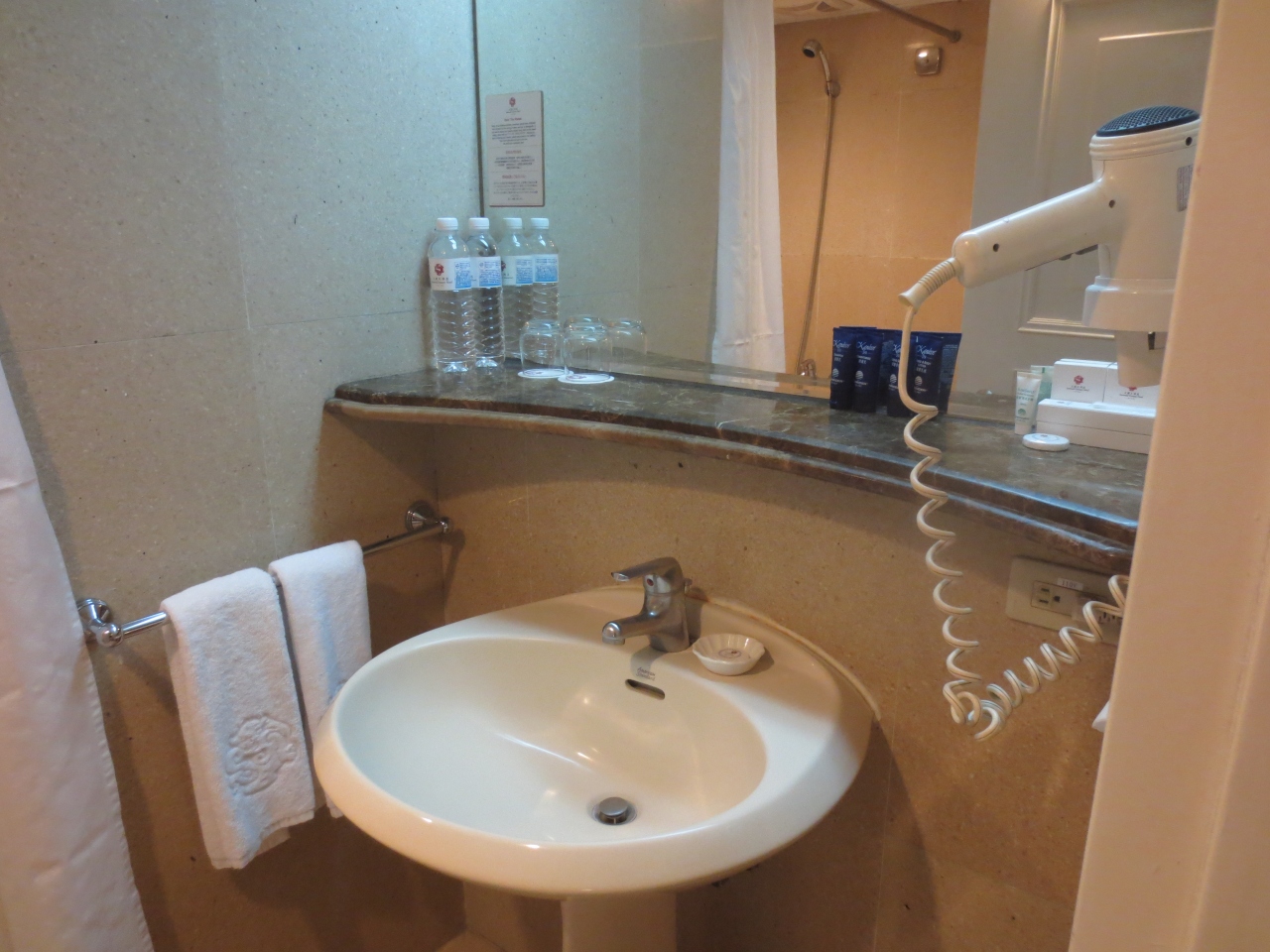 ライブ会場が台北アリーナだったため、近くのホテルを友達に予約してもらいました。松山空港からはタクシーで5分ほど、MRT駅も歩いてすぐの便利な立地。お部屋は古めですが、綺麗に掃除してあるので問題なし。スタッフのサービスも良かったです。またホテルにはコンビにがありすごく便利。大型ホテルなので、日本からの修学旅行生を見かけました。