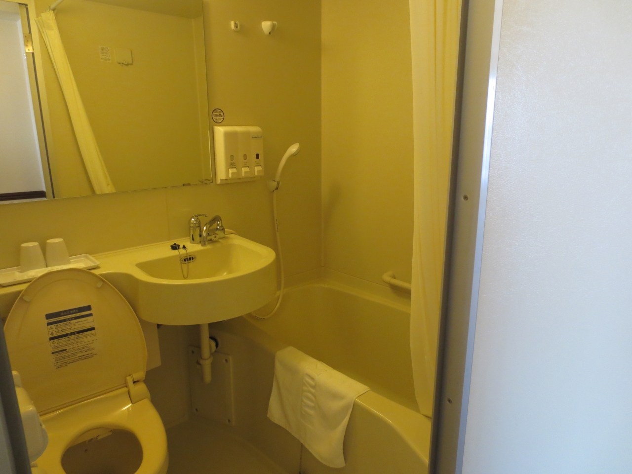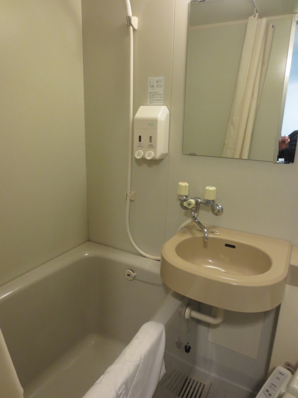 - カーテンで仕切られているだけバスタブなし