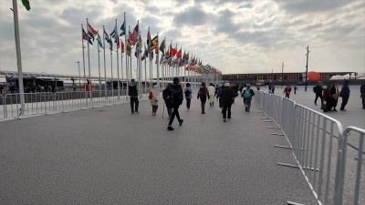 バス下車後、西ゲートに向かう。西ゲートは引火すれば爆発する可能性がある...