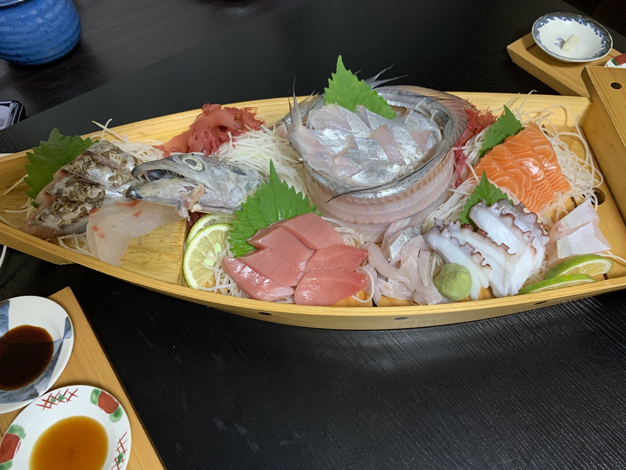 8室だけの小さな旅館ですが、4つの貸切風呂があり、夕食の舟盛りは絶品でした