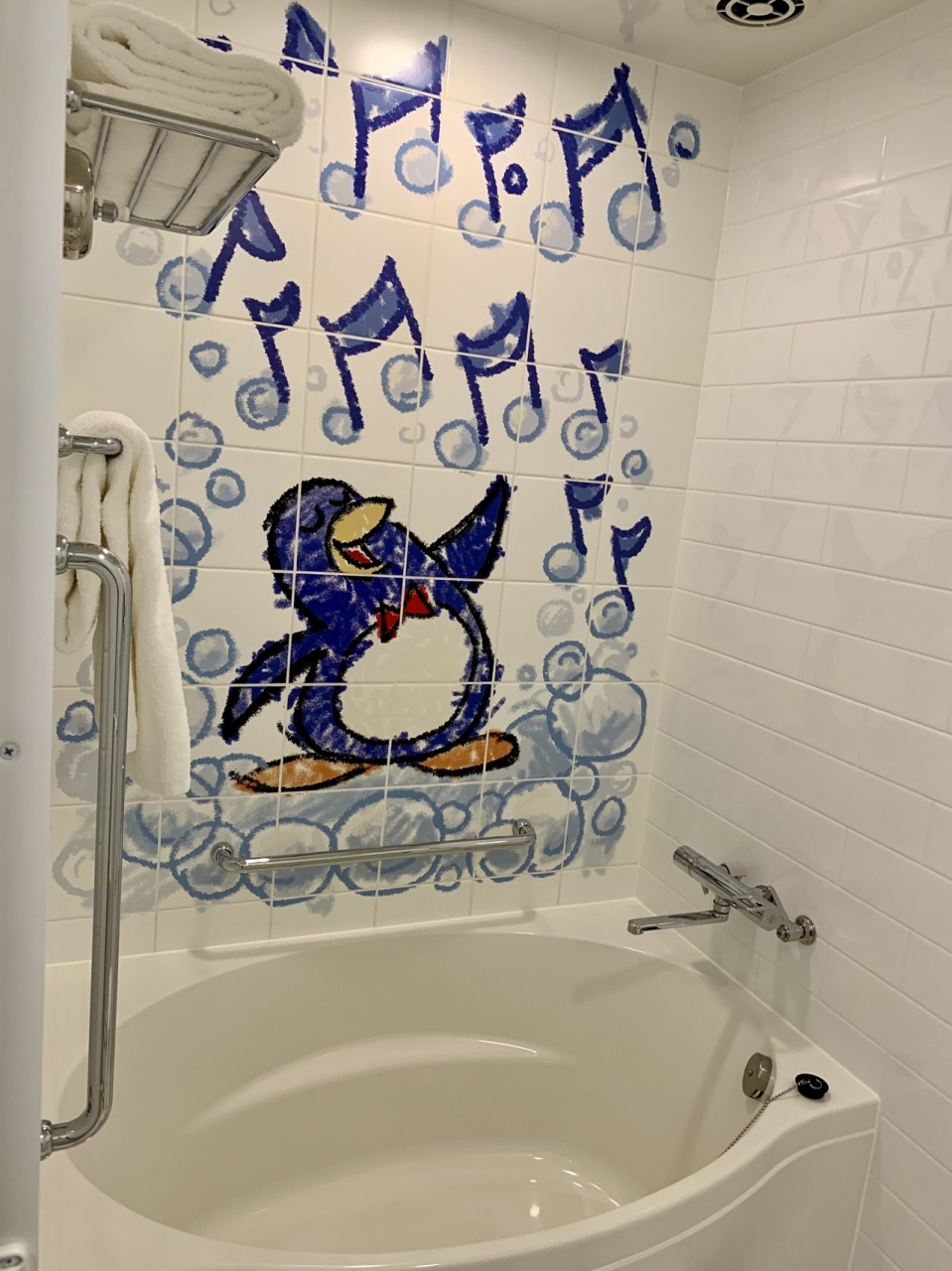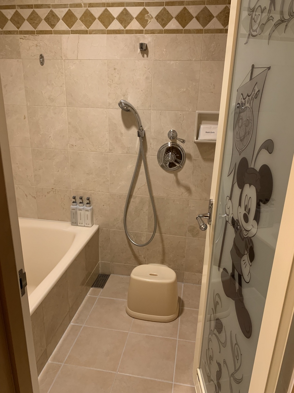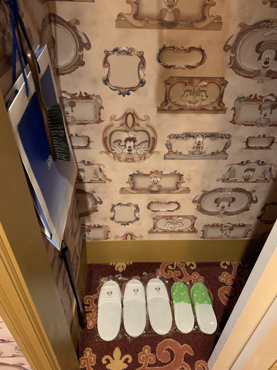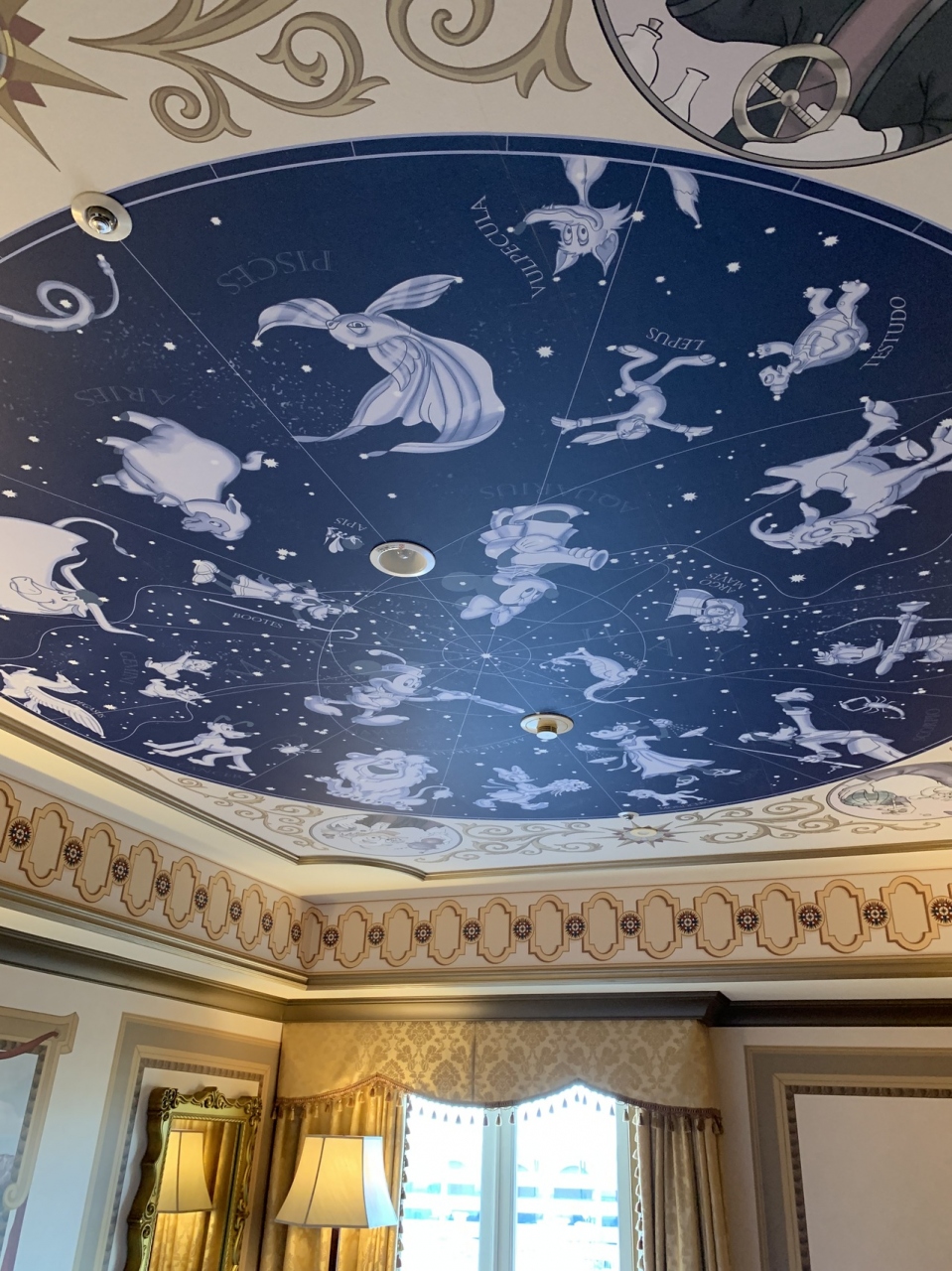 壁の絵画、クローゼットやバーカウンターの壁紙、天井、バスルームの扉など色々な所にディズニーのキャラが描かれていました。