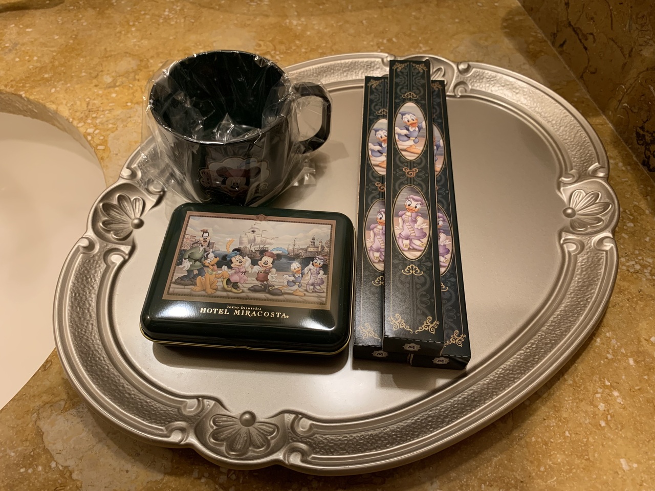 アメニティの歯ブラシの箱やコップにも、ホテルオリジナルのディズニーの絵が描かれていて、もちろん持ち帰りも可能です。