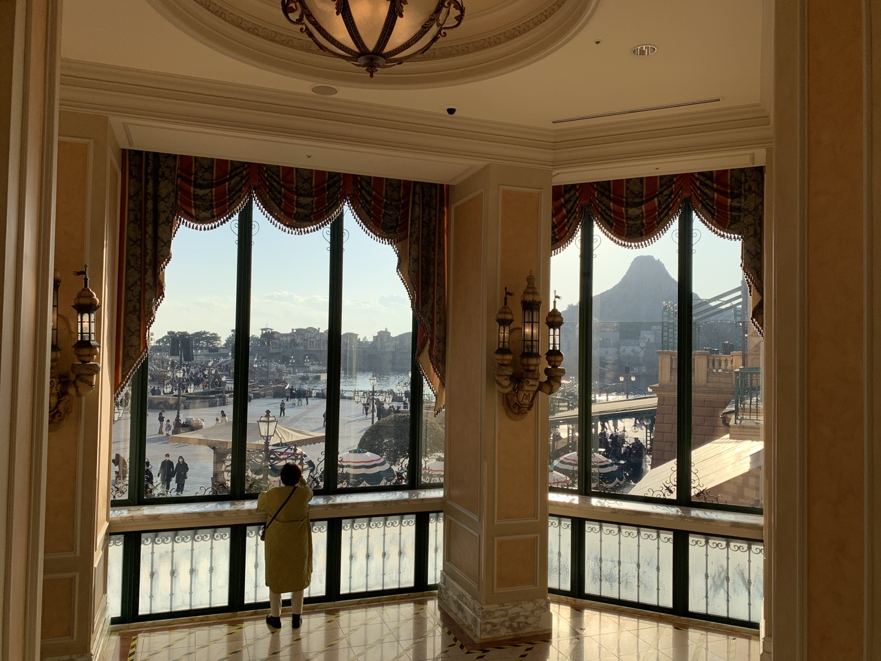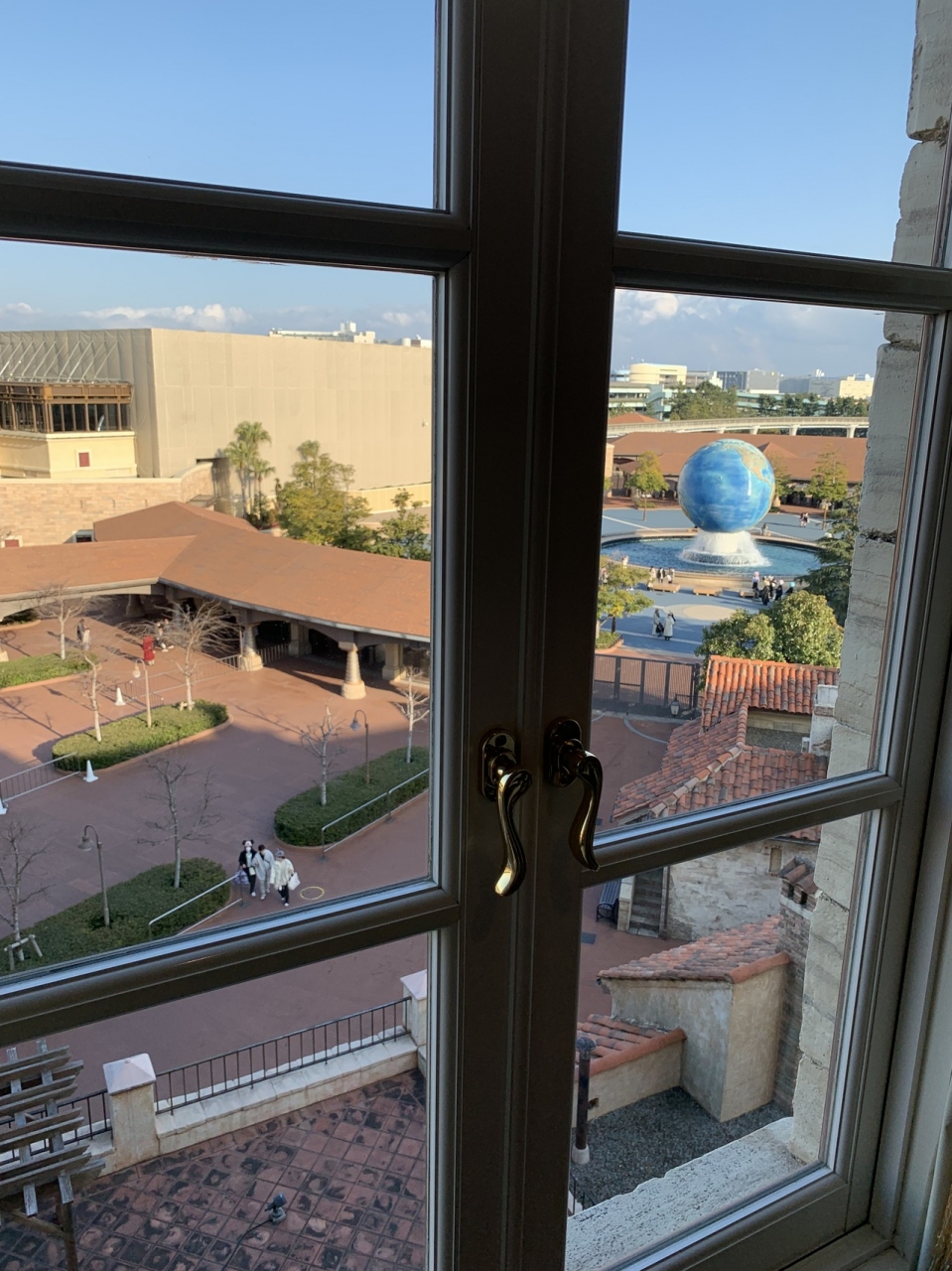 ディズニーシーが目の前に見える部屋もありますが、残念ながら今回泊まった部屋はシーのエントランスのみが見える部屋でした。