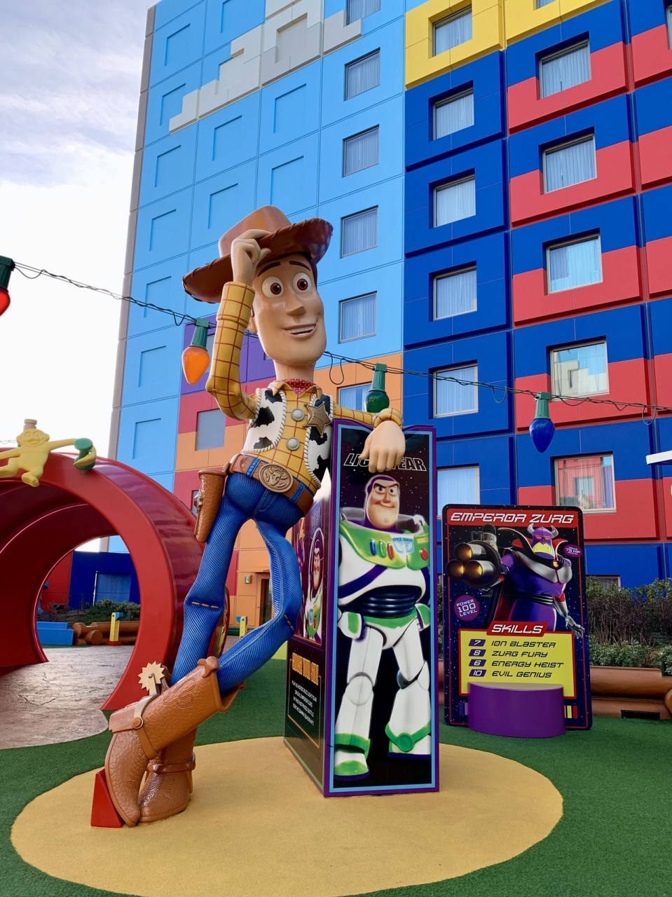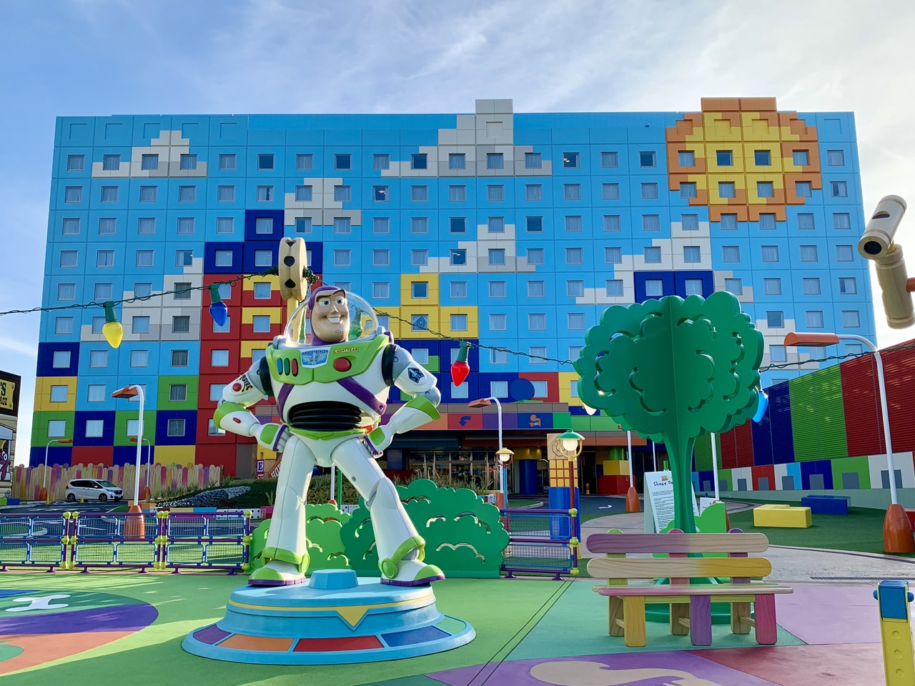 ホテル前の広場や中庭にも、トイストーリーのキャラが多くいて、ホテルだけでもかなり楽しめます。