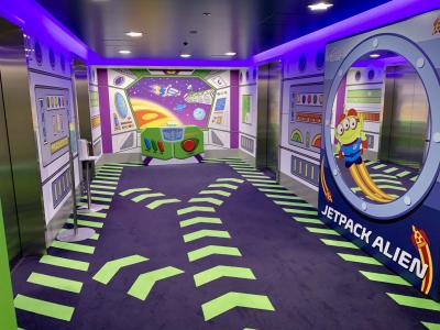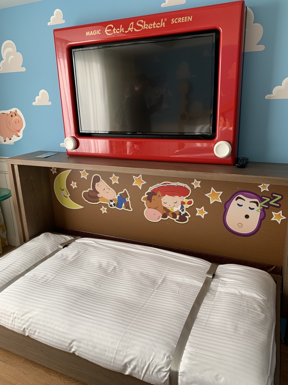 ホテルの入口からトイストーリーの世界が始まり、ロビー・エレベーター・廊下に至るまで、あちこちにワクワク感が広がります。