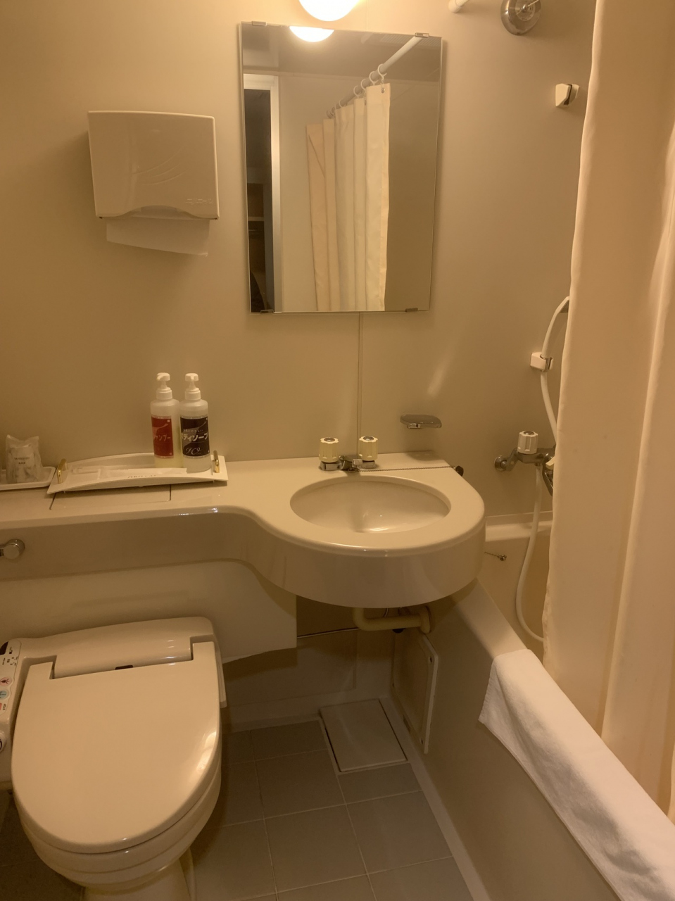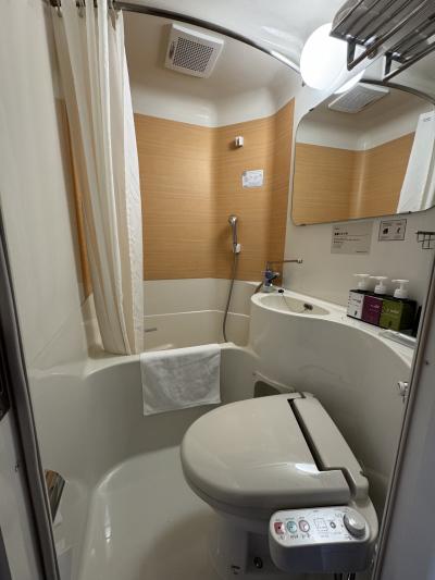 ユニットバスは狭いですが、駅近で朝食とドリンクサービスは嬉しいです