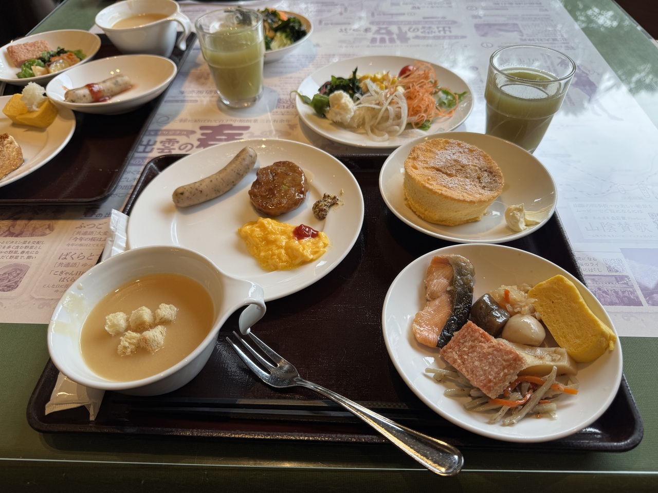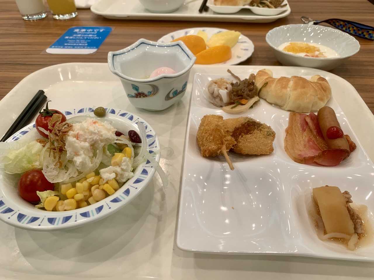 朝食はビュッフェで、特に珍しい食材もなく、お腹を満たすだけという内容でした。