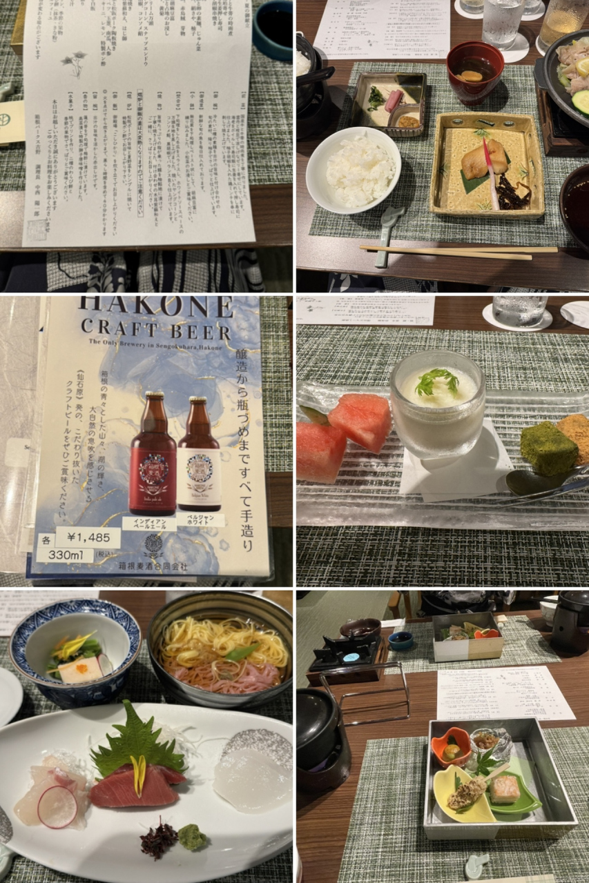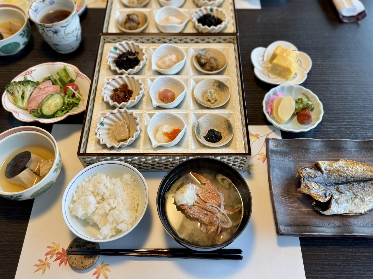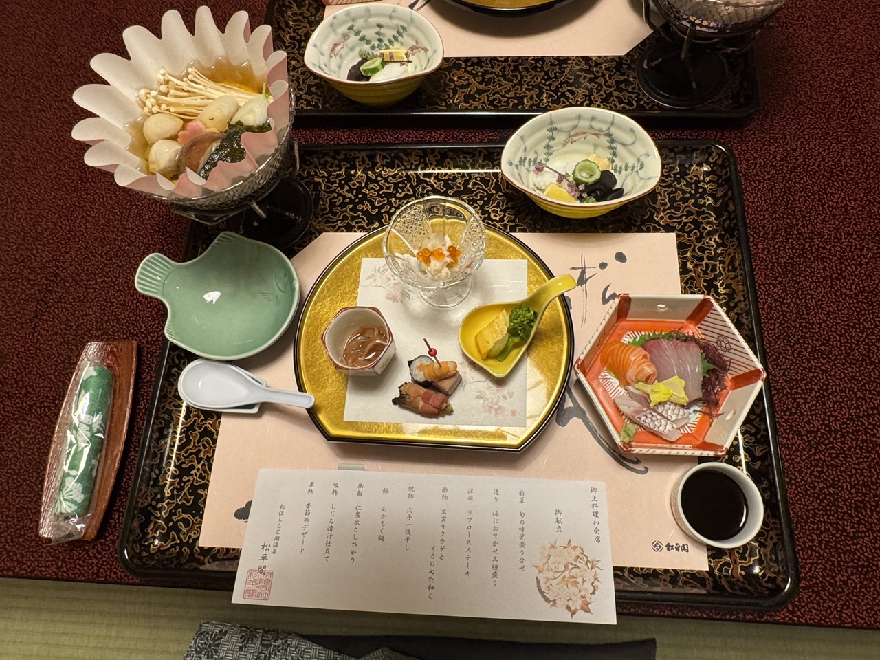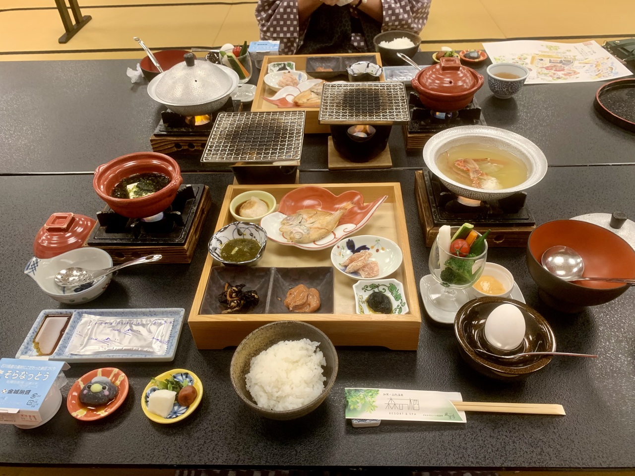 夕食は手の込んだ和懐石でとても美味しく、朝食も豪華な内容。