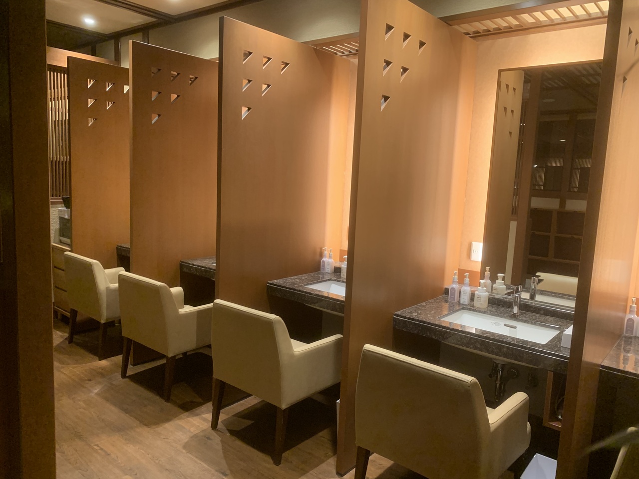 パウダールームも綺麗で、湯上がりのスペースにはドリンクサービスもあります。- 旅行時期