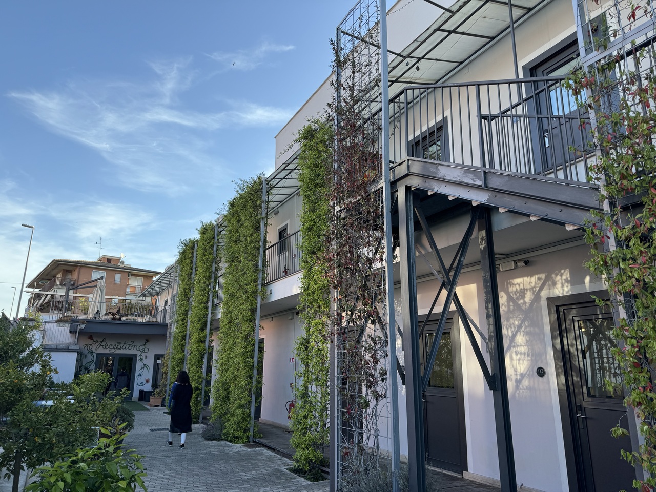 地下鉄B線の東側の終着駅のRebibbia駅(テルミニ駅からは10駅)から、徒歩で6~7分の場所にあります。