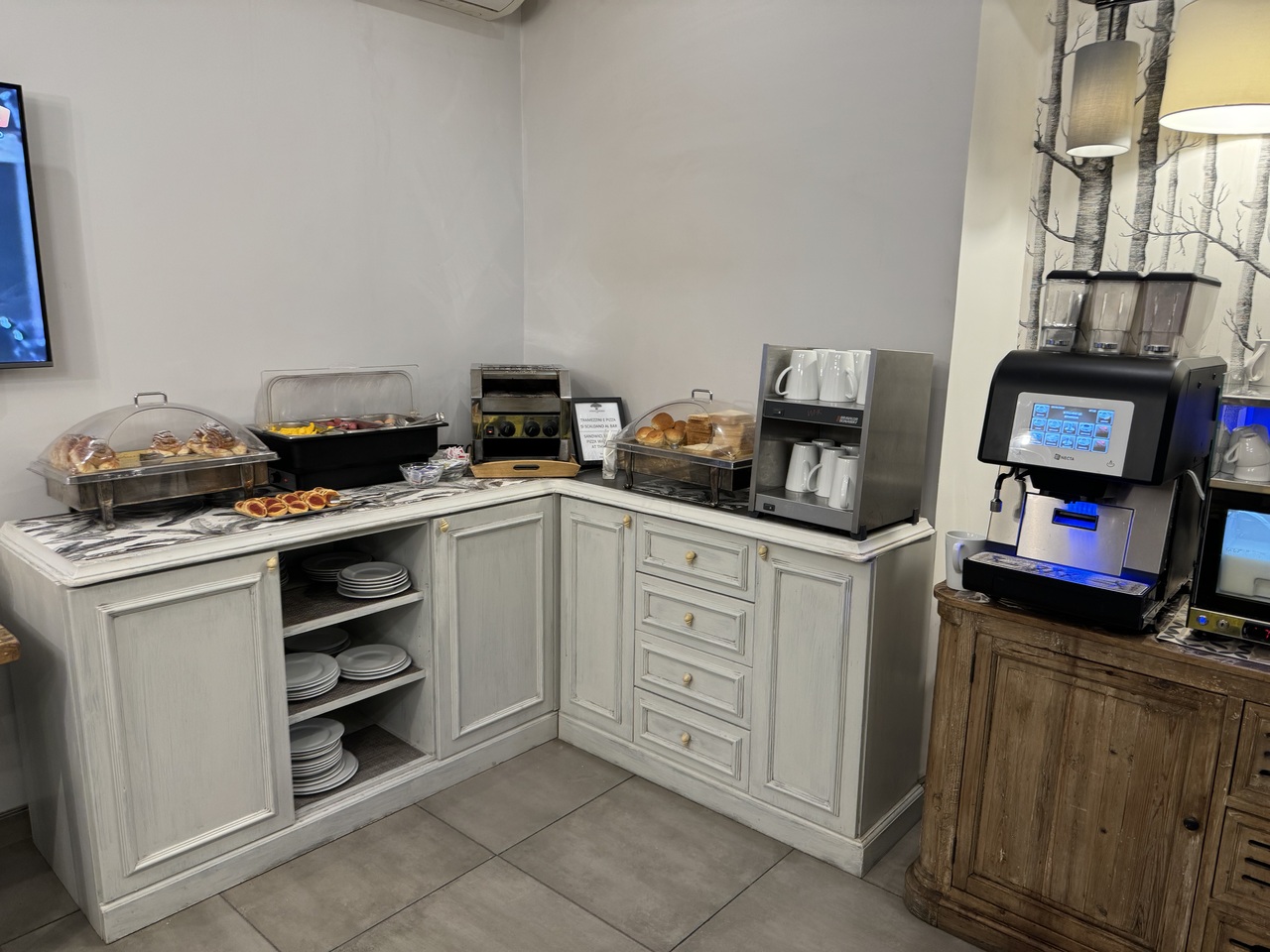 8ユーロでブュッフェの朝食を食べる事が出来て、クロワッサンが美味しかったです。