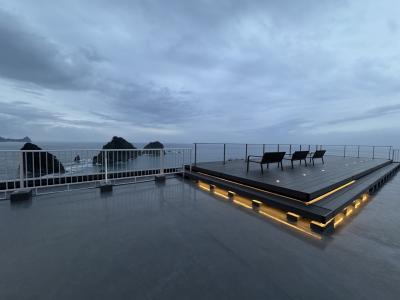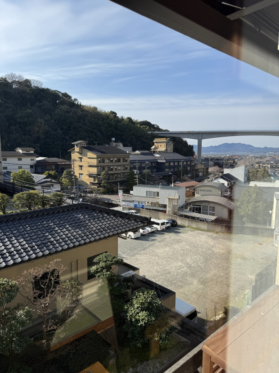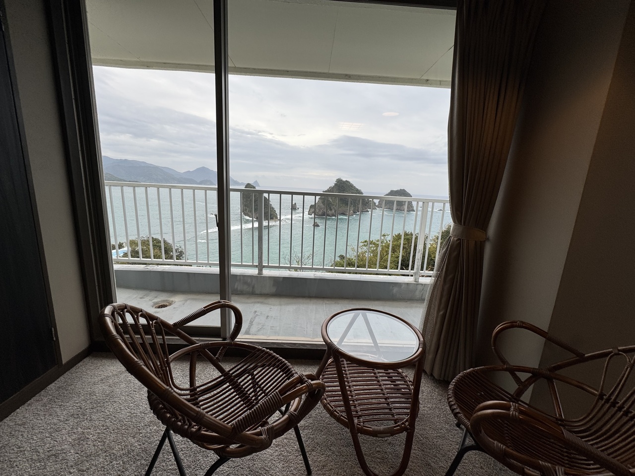 全ての部屋がオーシャンビューとなっているようですが、日本海が遠くに見えるだけの眺望です。