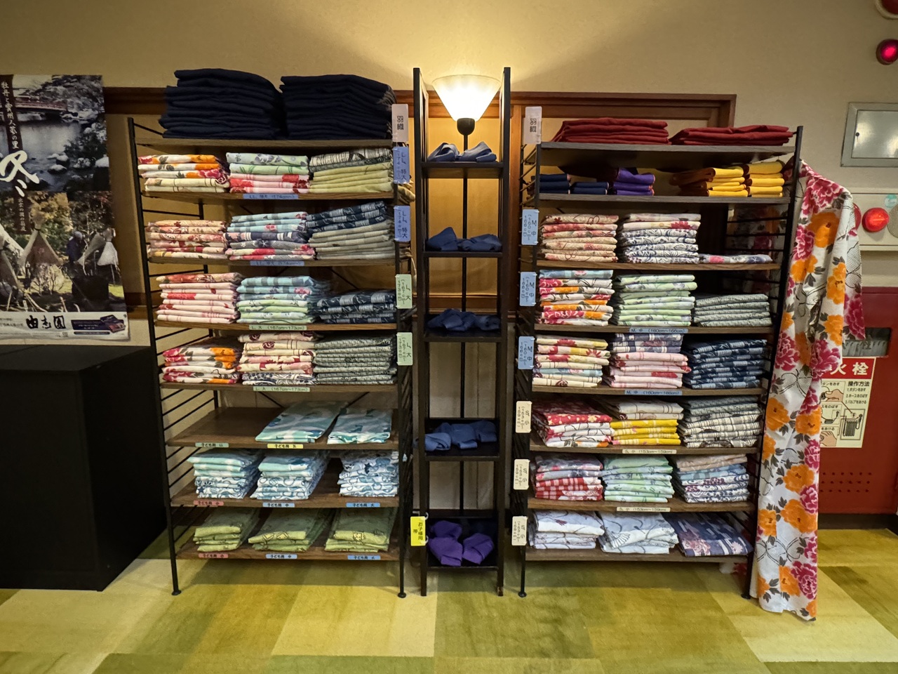 部屋には浴衣は置いてなくて、ロビーに置いてある浴衣を自分で部屋に持っていきます。- 旅行時期