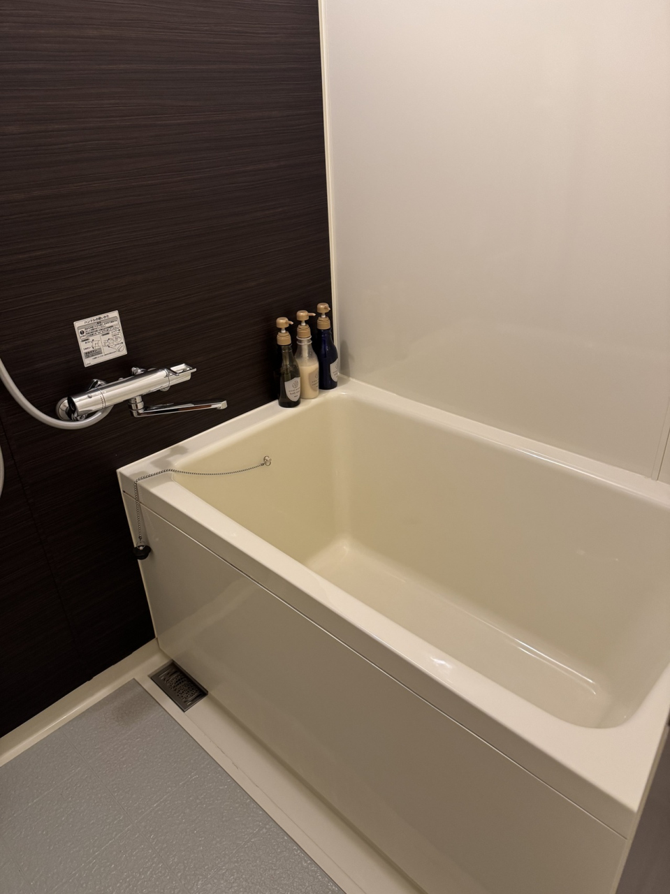 ユニットバスは、トイレを座ってする時はかなり狭く、バスタブも足を伸ばして座れません。