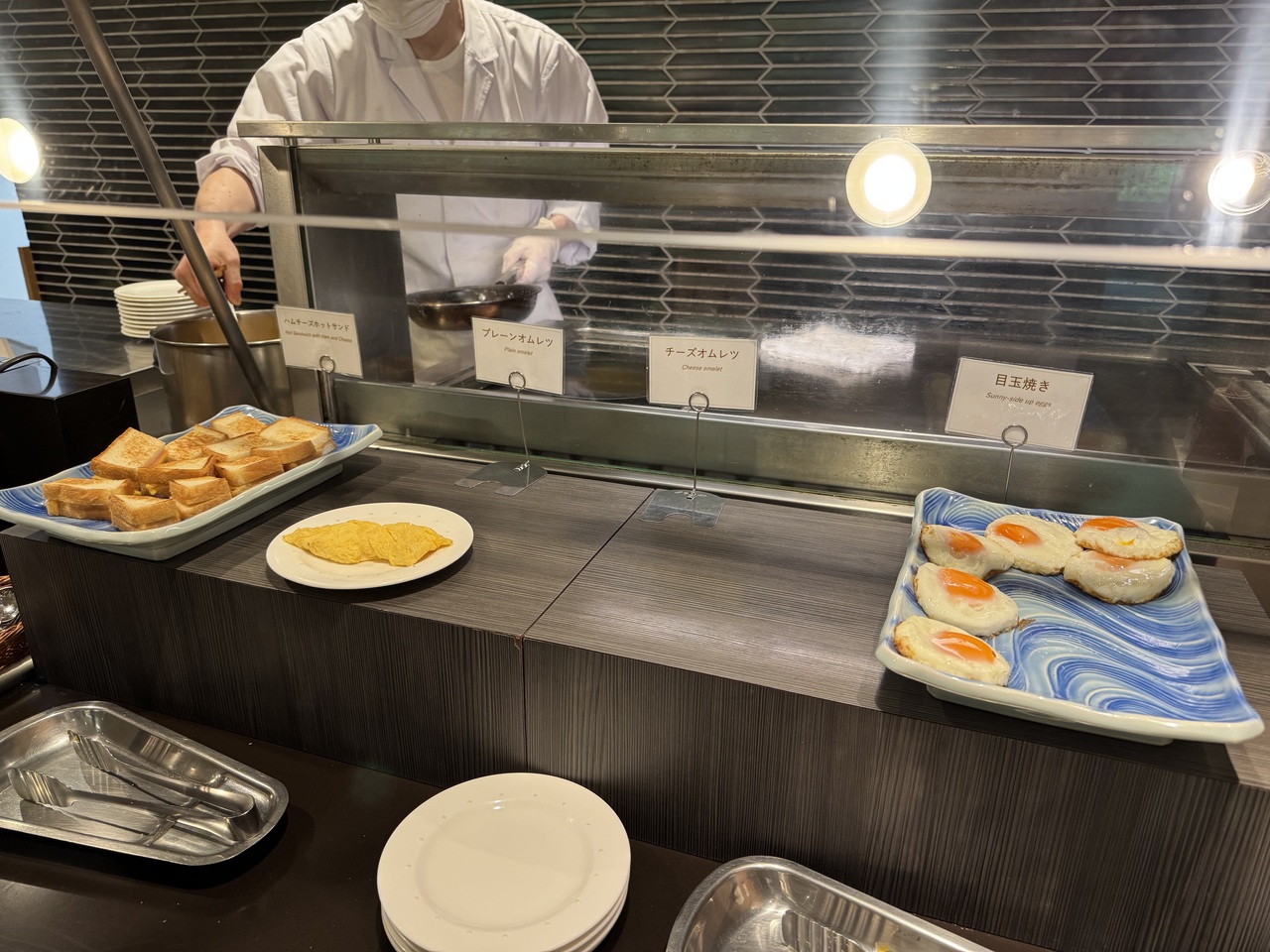 朝食もオムレツやパンケーキ・フレンチトーストをライブキッチンで使ってくれ、オムレツは入れる具材を選べます。