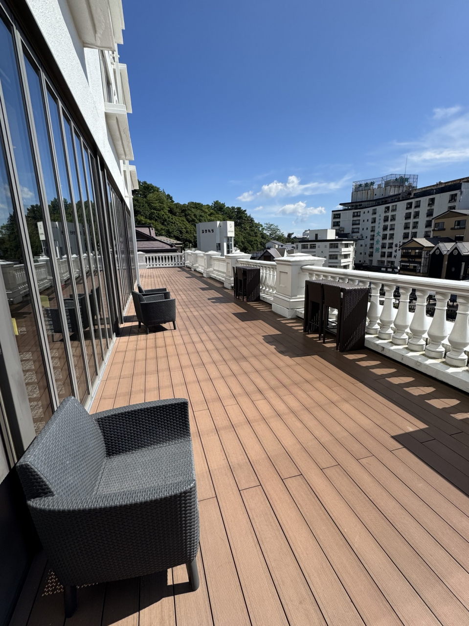 本館3階のテラスからは湯畑を一望出来ます。- 旅行時期