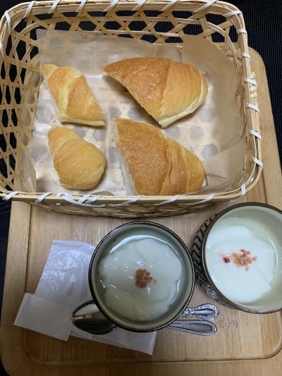 朝食にはご飯の他に焼き立てのパンも出てきます。- 旅行時期