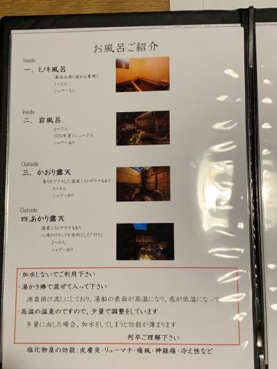 お風呂の種類も多く色々と楽しめますが、加温加水しているので、泉質の面が少しだけ残念でした。