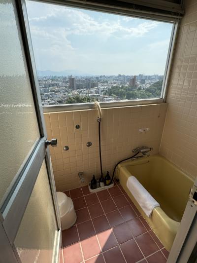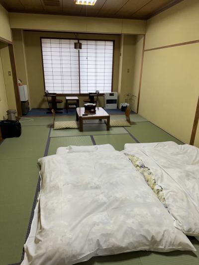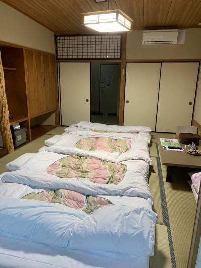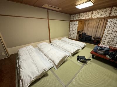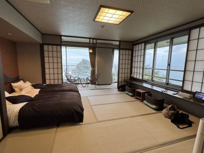 部屋は12畳で畳の上にベッドが2台置いてある部屋で、眺望は良くありませんでした。