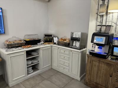 ロビー横の休憩スペースでは6時半から簡単な朝食ビュッフェがあり、ソフトドリンクが15時~20時、アルコールが18時~20時に無料で利用する事が出来て便利でした。- 旅行時期