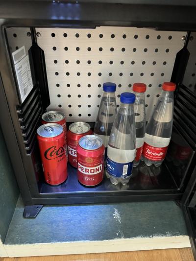 電気ポットやインスタントコーヒー・紙コップもあり、冷蔵庫の中には缶飲料と水が1人1本ずつ用意されていました。