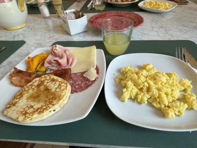 朝食はビュッフェで、オムレツを焼いてくれるというので楽しみにしていましたが、小さくて纏めて焼かれた物が並べられていて、プレーンとチーズ入りだけでした。- 旅行時期