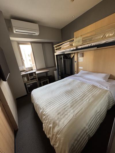 今回泊まった部屋は、ダブルベッドと二段ベッドがあったので4人で泊まる事が出来ました。