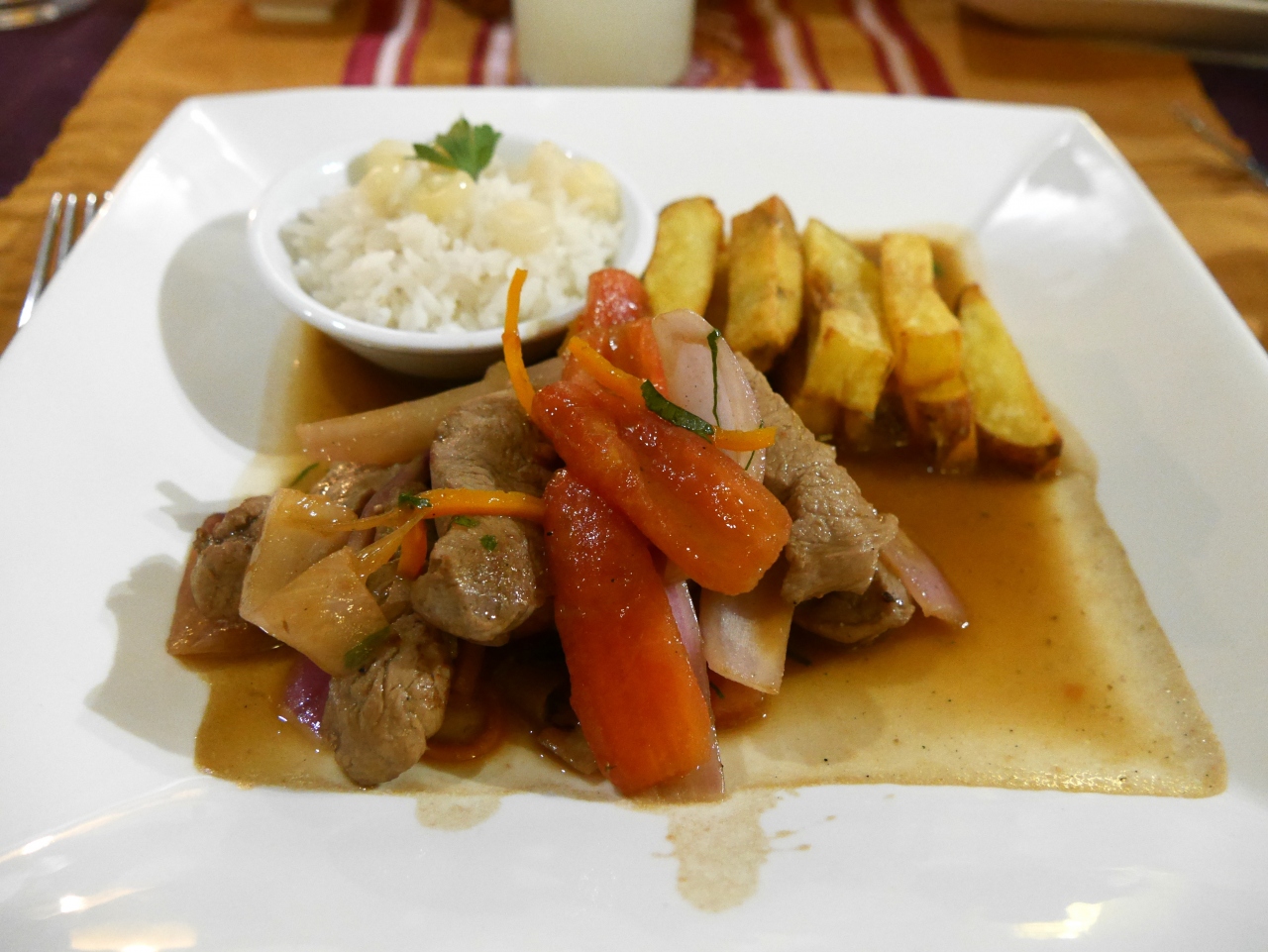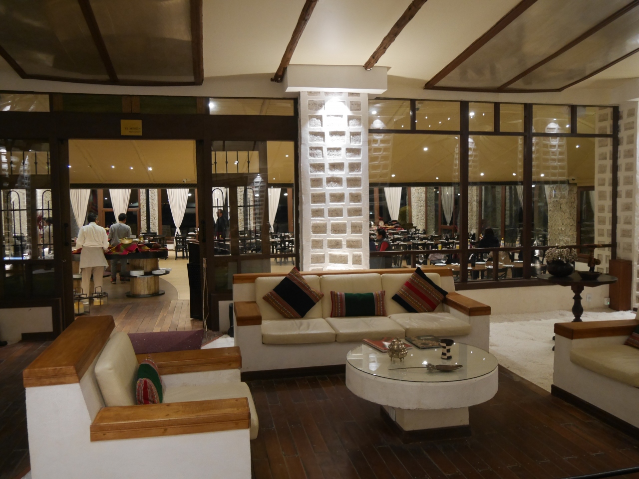 夕食は、珍しいアルパカの肉が用意されていたり、魚料理も出てきて、見た目も綺麗で美味しかったです。
