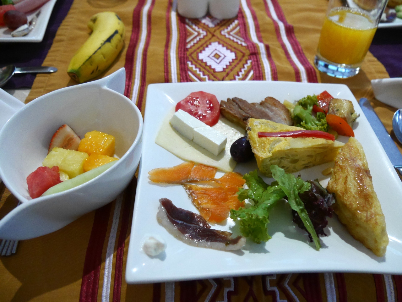 夕食はもう一つでしたが、朝食は生ハムや絞りたてのジュースなどがありかなり豪華でした。- 旅行時期