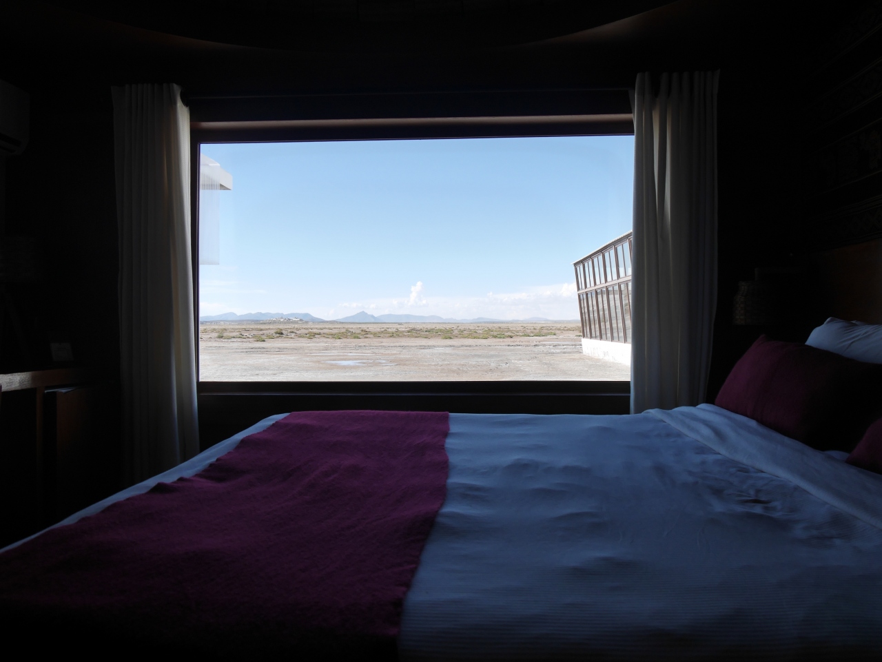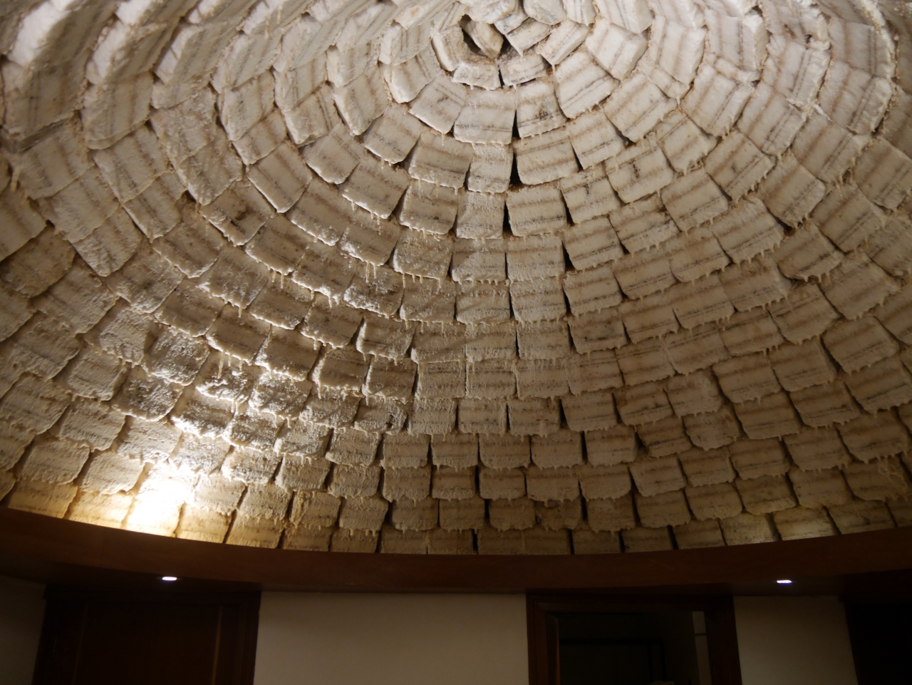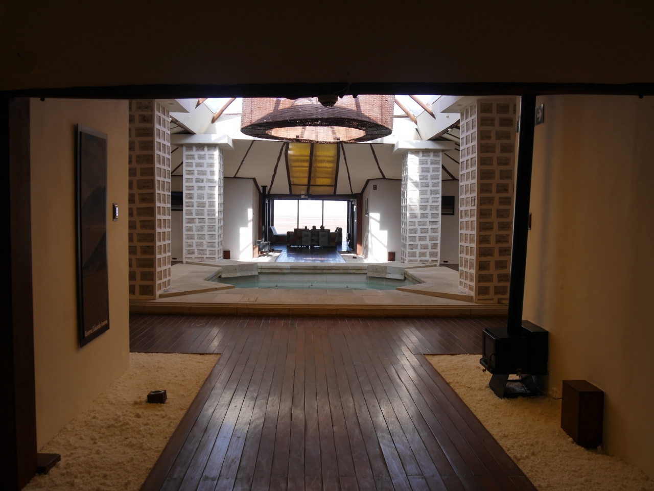 ホテルの柱や部屋の天井に塩のブロックが使われています。