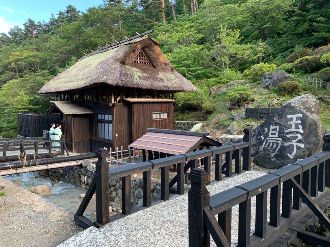 下駄を履いて外に出ると、湯小屋の玉子湯、露天風呂の天渓の湯と天翔の湯は1日交代で男女が入れ替わり、女性専用の瀬音の他、足湯もあります。