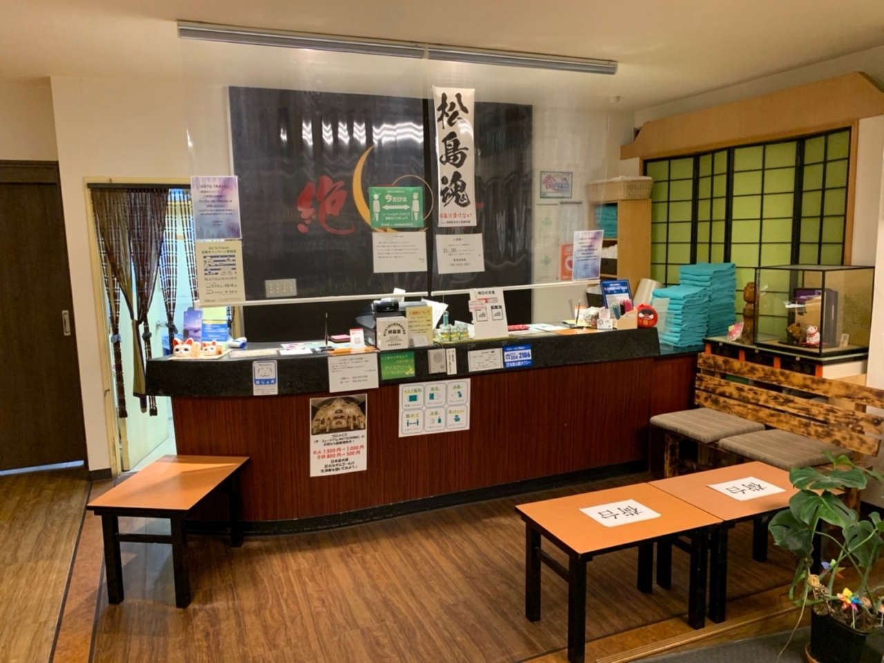 ロビーは3階にあり、部屋はロビーから比較的近い3階の8帖+板の間で、トイレはありますが風呂無しのスタンダードプランで一人税込14,300円の料金ですが、この時はGO TOの割引で9.295円と5,000円ほどお得でした。